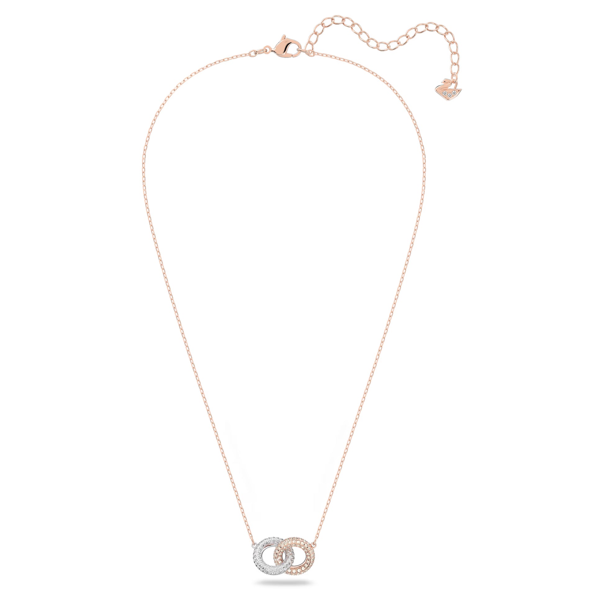 Dextera Necklace, Intertwined Circles, White, Rose Gold Tone Plated