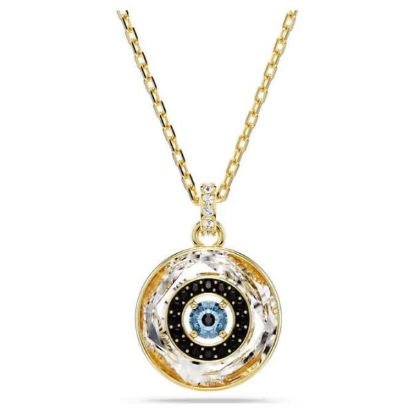 Embrace positivity with this Symbolica pendant. The gold-tone plated jewellery is a showcase of Swarovski savoir-faire, featuring an evil eye motif crafted from a faceted outer ring, black pavé and a dancing central stone in blue. Suspended from a beaded chain and connected with a small pavé link, this light-filled pendant is both meaningful and mesmerising.