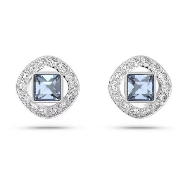 Una Angelic Stud Earrings, Square Cut, Blue, Rhod