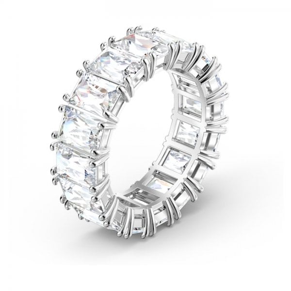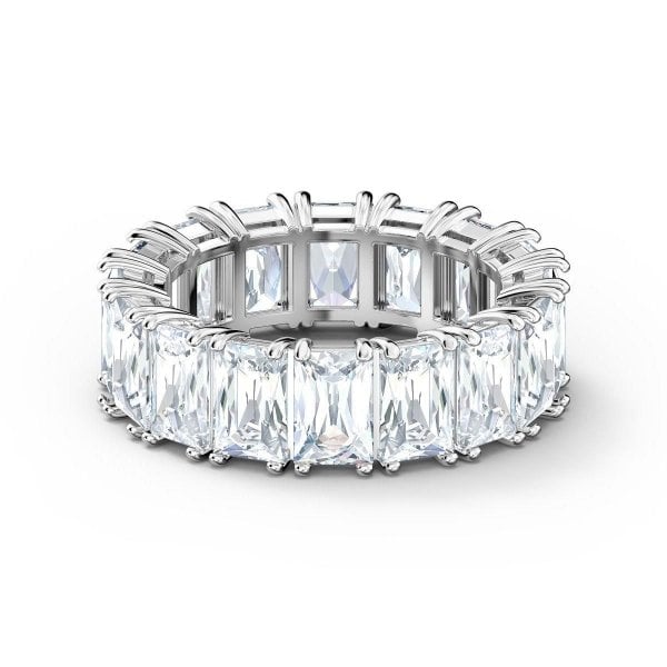 A striking, elegant look distinguishes this Swarovski ring. A row of gleaming white stones, cut into a faceted, rectangular shape, lends it an air of refined simplicity. The unbroken line of sparkling stones defines the character of the design and matches well with equally elegant pieces of jewellery, especially other rings for an on-trend stacked look. A great match for special occasions, and an inspired gift giving idea.