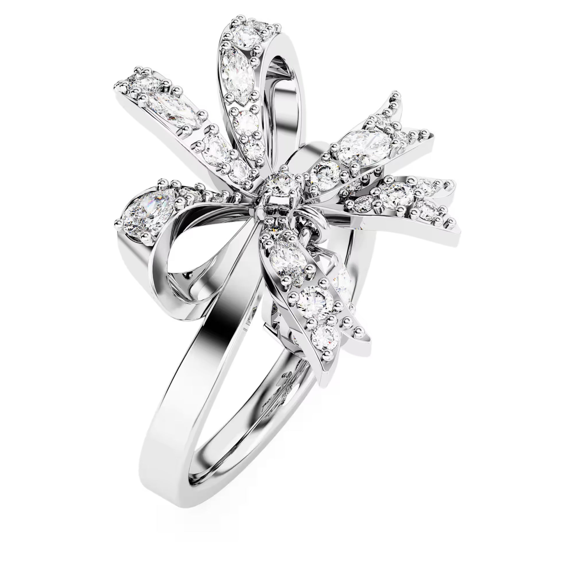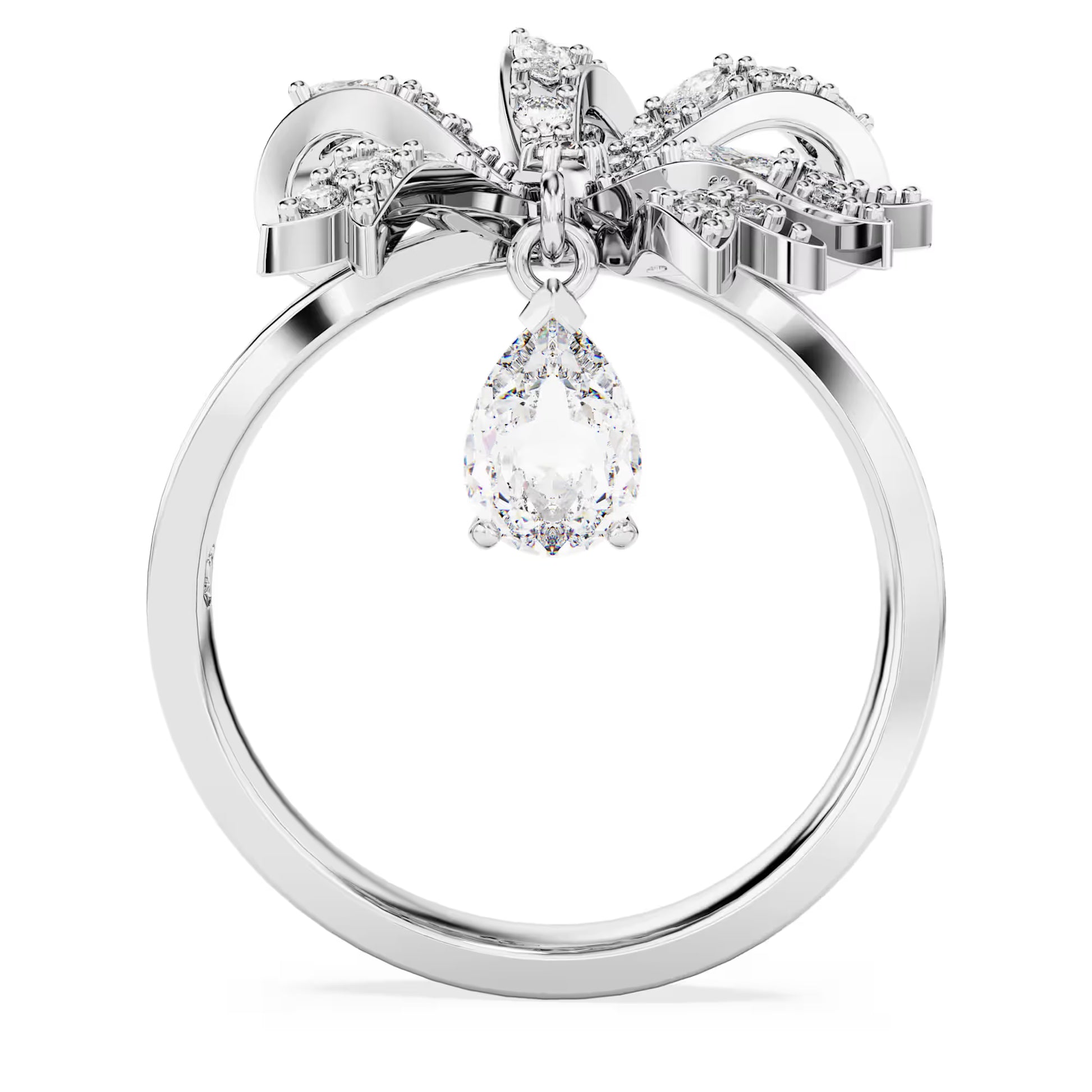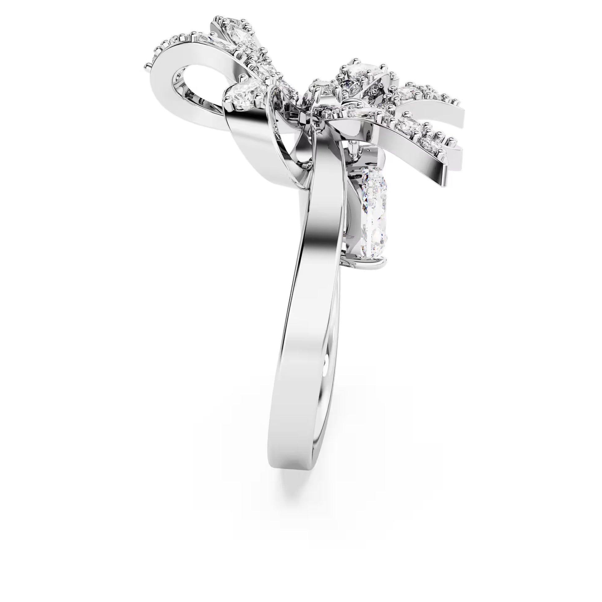 Volta Cocktail Ring, Bow, White, Rhodium Plated