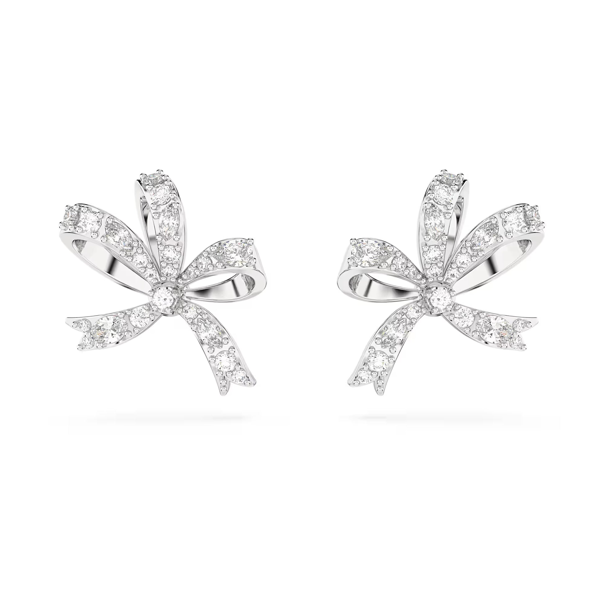 These cute bow-inspired studs are an ideal way to bring more elegance to your look. Each rhodium plated piece is tied up in a ribbon design with an array of bright clear crystals set in place using the chattonage technique. A clear central stone provides the finishing touch. A wonderful romantic gift idea, these can be matched with a necklace from the Hyperbola collection to harmonize your style.