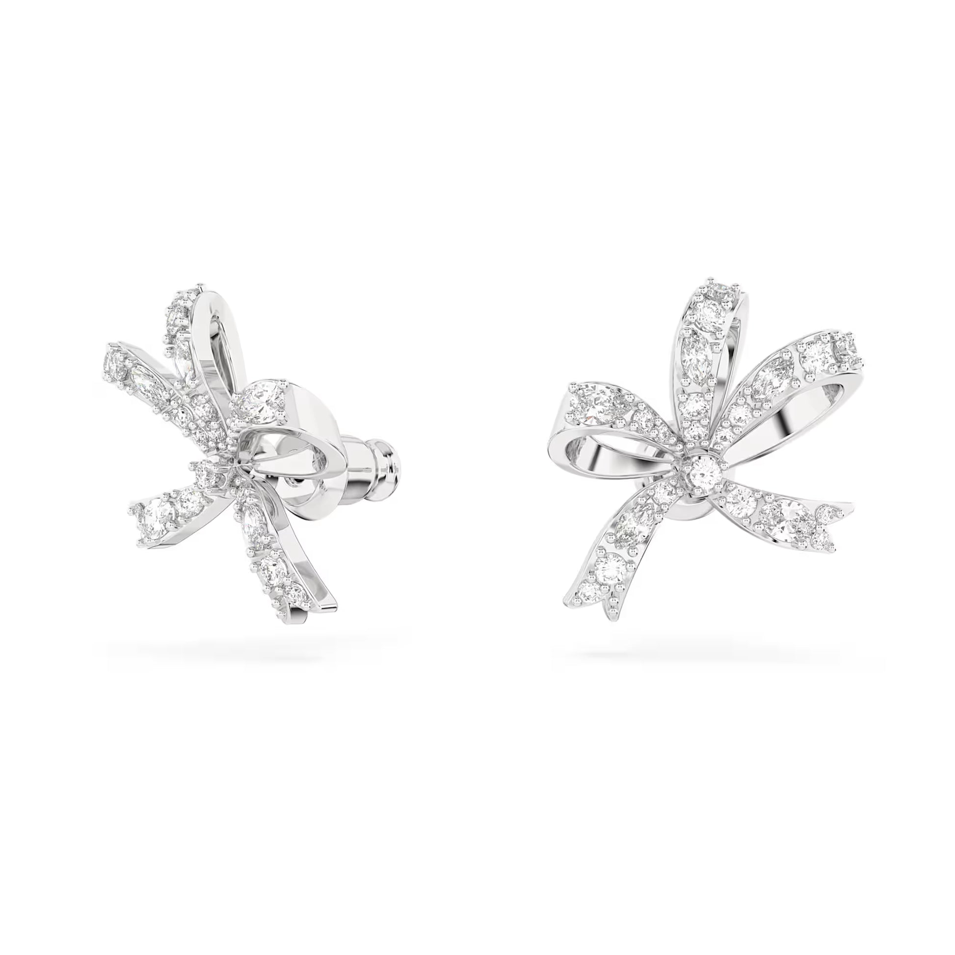 Volta Stud Earrings, Bow, Small, White, Rhodium