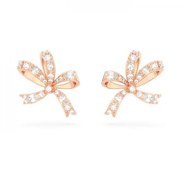 These glowing bow-inspired studs are an ideal way to bring more elegance to your look. Each rose gold-tone plated piece is tied up in a ribbon design with an array of bright clear crystals set in place using the chattonage technique. A clear central stone
