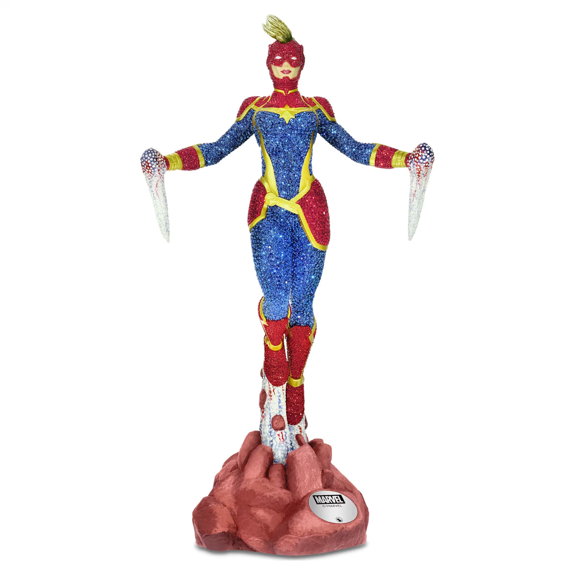Made with more than 10,000 glistening crystals, this stunning Limited Edition figurine is a perfect display of Captain Marvels assertive and unyielding qualities. The creation is delivered in the characters signature colours and shows her ready for take-off in a quest to protect the universe. Each of the 200 Limited Edition pieces is presented in a premium suitcase, and requires 110 hours of work using our patented Pointiage technique. This exclusive piece would make a rare collectible for any superhero fan and can be combined with other Captain Marvel items in the collection, including reusable stickers and a dazzling ring. Decoration object. Not a toy. Not suitable for children under 15.