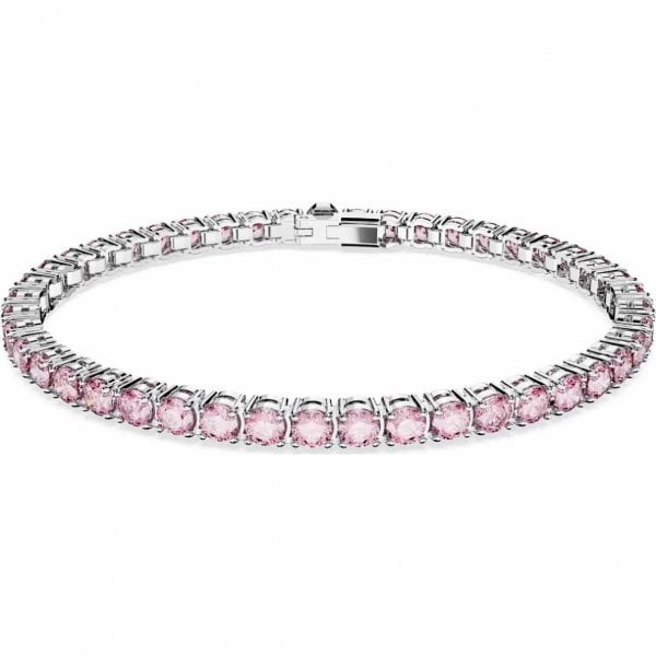 Enjoy the glimmer of rich colour with this bracelet from the Matrix Tennis family. In perfectly formed fluidity, the design features a row of round purplish pink stones on a rhodium plated setting for a combination that is truly alluring. Wear it alone, or pair it with other pieces from the Matrix Tennis family.