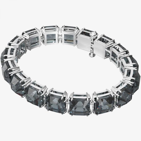 This striking bracelet defines everyday elegance with an edge. Featuring square-cut crystals in a bold, graphite hue, its expertly finished with a sleek, rhodium-plated setting. Intended to be genderless, wear yours solo as the ultimate punctuation for any look or stack it with other designs from the Millenia family. This bracelet is part of the Millenia family, designed by Creative Director Giovanna Engelbert for Collection II.