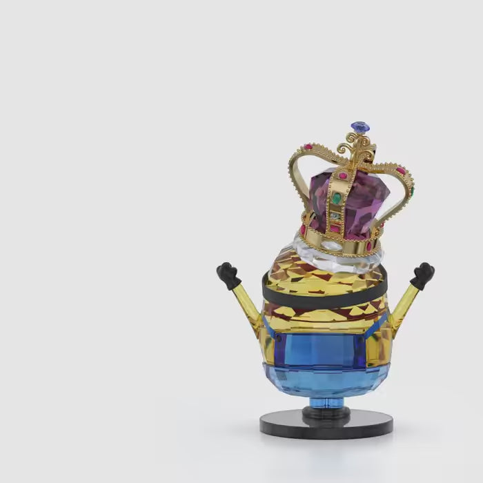 Dedicating their lives to the world’s most villainous boss, the mischievous yellow Minions always find themselves on a comical adventure. This royal creation celebrates King Bob, and his brief yet iconic reign as the King of England. Intricately crafted with 1,026 precision-cut facets, the design playfully captures Bob’s delighted expression and endearing pose during the crowning ceremony. Eye-catching details include his gold-tone metal crown with a bright purple crystal and his chrome plated goggles with black artificial leather. Gift this King Bob Figurine to an avid movie fan, or collect Swarovski's entire Minion set. Decoration object. Not a toy. Not suitable for children under 15.
