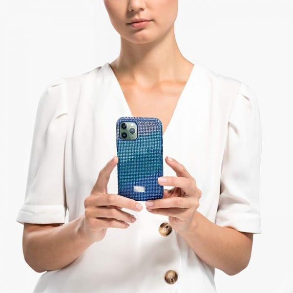 Make your everyday sparkle in style with this dazzling smartphone case. Compatible with the iPhone® IP11 Pro, it is beautifully adorned with more than a thousand finely cut crystals in a stunning gradation of blue tones. A cool and gorgeous design inspired by the colours of the night sky. Combining style and functionality, it also features the Swarovski logo and a bumper for extra protection. Compatible with official wireless Apple phone chargers. iPhone® is a trademark of Apple Inc.