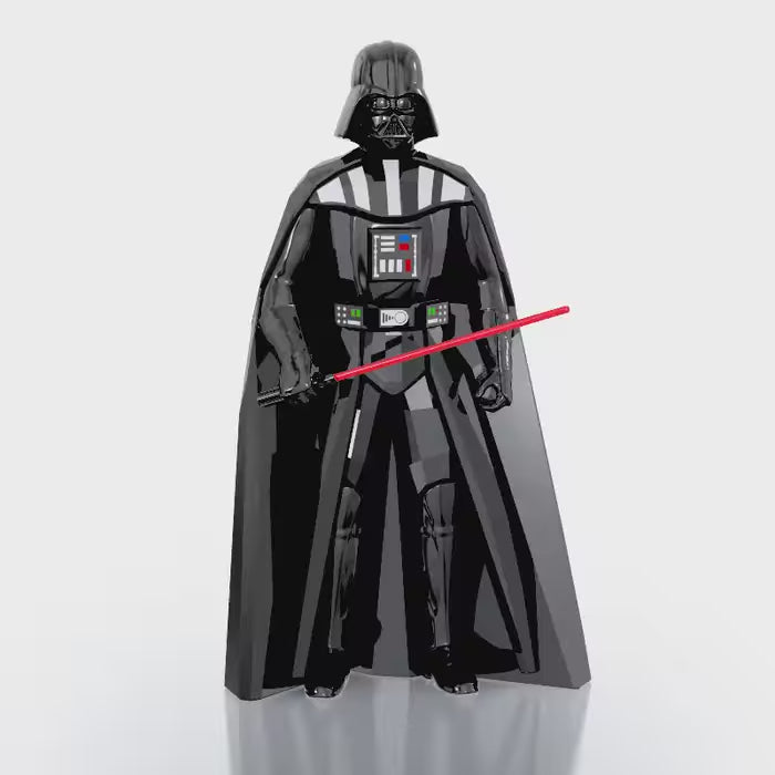The Star Wars galaxy meets sparkling Swarovski crystal. Darth Vader, one of the most iconic villains in popular culture, is expertly crafted in black crystal with 551 facets. His outfit features printed details in various colours and he holds the iconic lightsaber, made of metal with black and red varnish. Decoration object. Not a toy. Not suitable for children under 15.