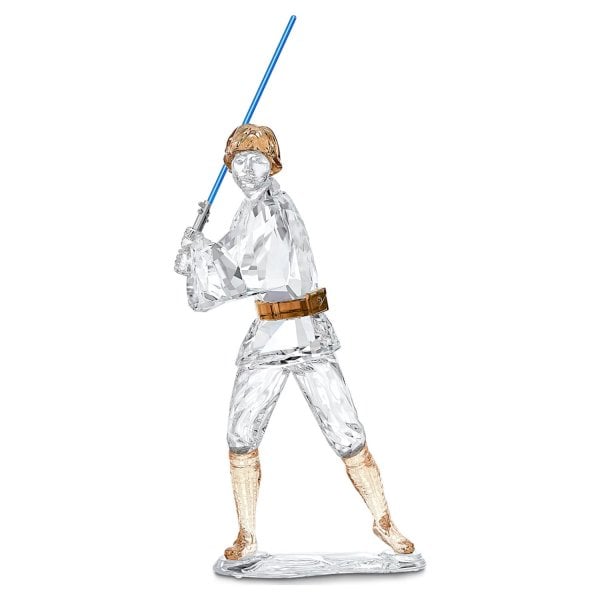 This detailed Swarovski figurine is a gleaming interpretation of a famous hero from the Star Wars universe. It portrays Luke Skywalker in 411 expertly worked facets of sparkling crystal, from his beige boots to his blond hair and brown belt. His famous li