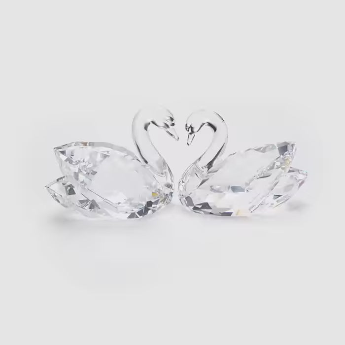 This modernised Swan Couple by Swarovski boasts 305 sparkling clear crystal facets. When placed together, the necks of the elegant and graceful swans create the shape of a heart. An excellent representation of timeless sophistication and Swarovski craftsmanship as well as a strong symbol of love, this figurine is both a romantic gift idea and a beautiful collector's piece. Decoration object. Not a toy. Not suitable for children under 15.