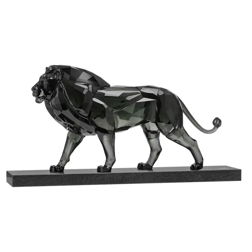 The lion, the largest of all African wild cats and the king of all beasts, represents courage, strength, and wisdom and serves as a symbol of pride and majesty. Carefully crafted from 1,219 enlarged black crystal facets and displayed on a granite platform, this breathtaking statement design will elevate your home decor to a new level. Only 1,000 of these graceful animals are available. Each one is a true showcase of Swarovskis century-long dedication to design and technical mastery, and features the Swarovski logo, the limited number and the signature of the designer engraved on the base. Decoration object. Not a toy. Not suitable for children under 15. Crystal Myriad and licensed-in pieces are crafted on demand, so please allow some additional time for delivery. They are delivered in a special suitcase with a certificate of authenticity, and the shipping procedure includes insurance and a delivery note.