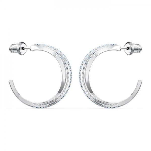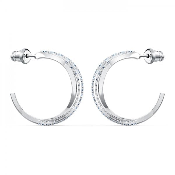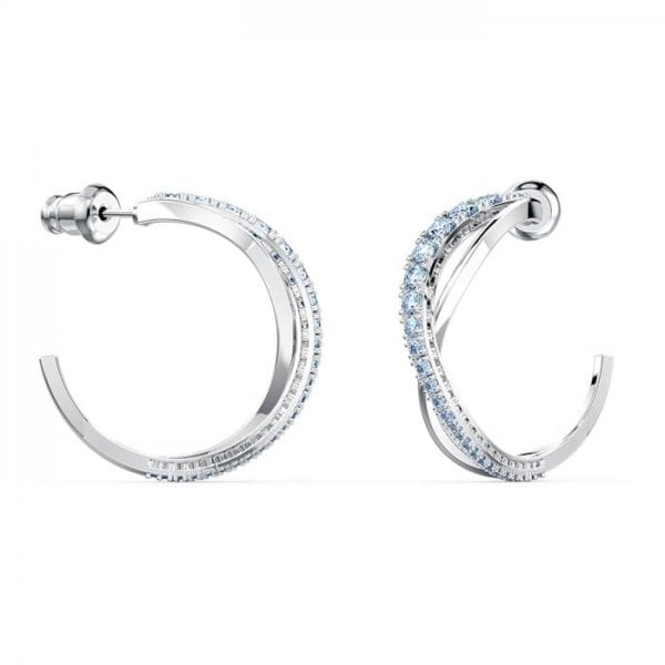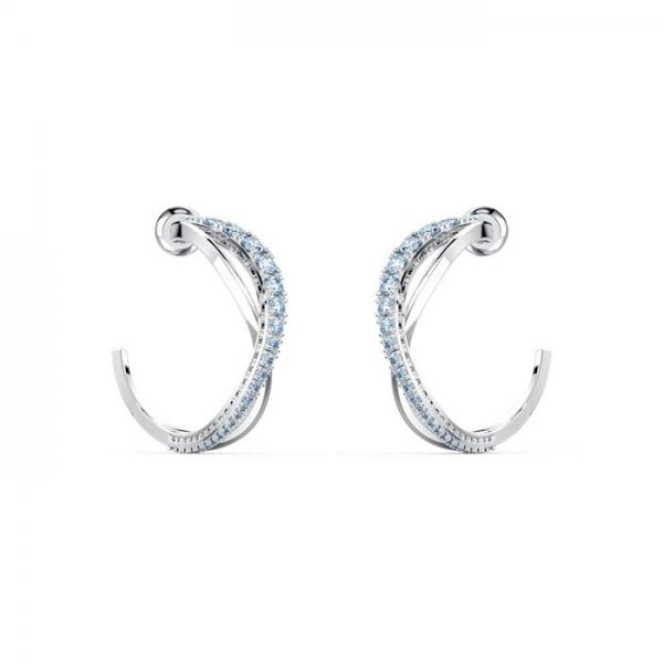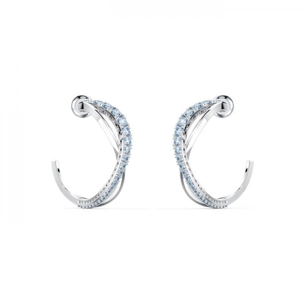 This pair of pierced earrings by Swarovski celebrates our 125th anniversary, an embodiment of puristic style with a twist. Each earring consists of two elegantly curving lines intertwined with each other, one sparkling with the bright brilliance of gleaming, light blue stones, the other shimmering gently. Combining timeless appeal with a modern touch, these earrings are a great choice to embellish your everyday outfits.