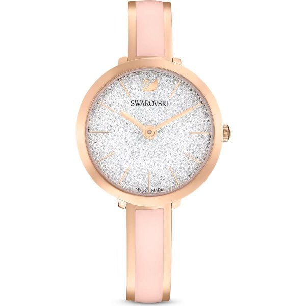 Crystalline Delight Watch, Metal Bracelet, Pink