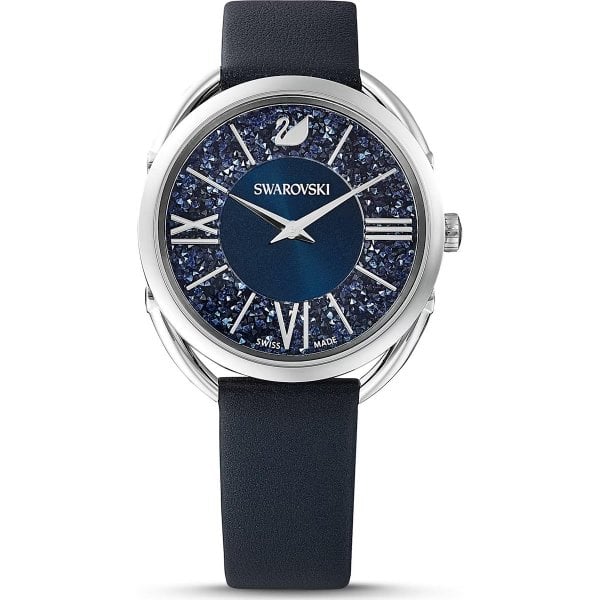 Crystalline Glam Watch, Leather Strap, Blue, Stain