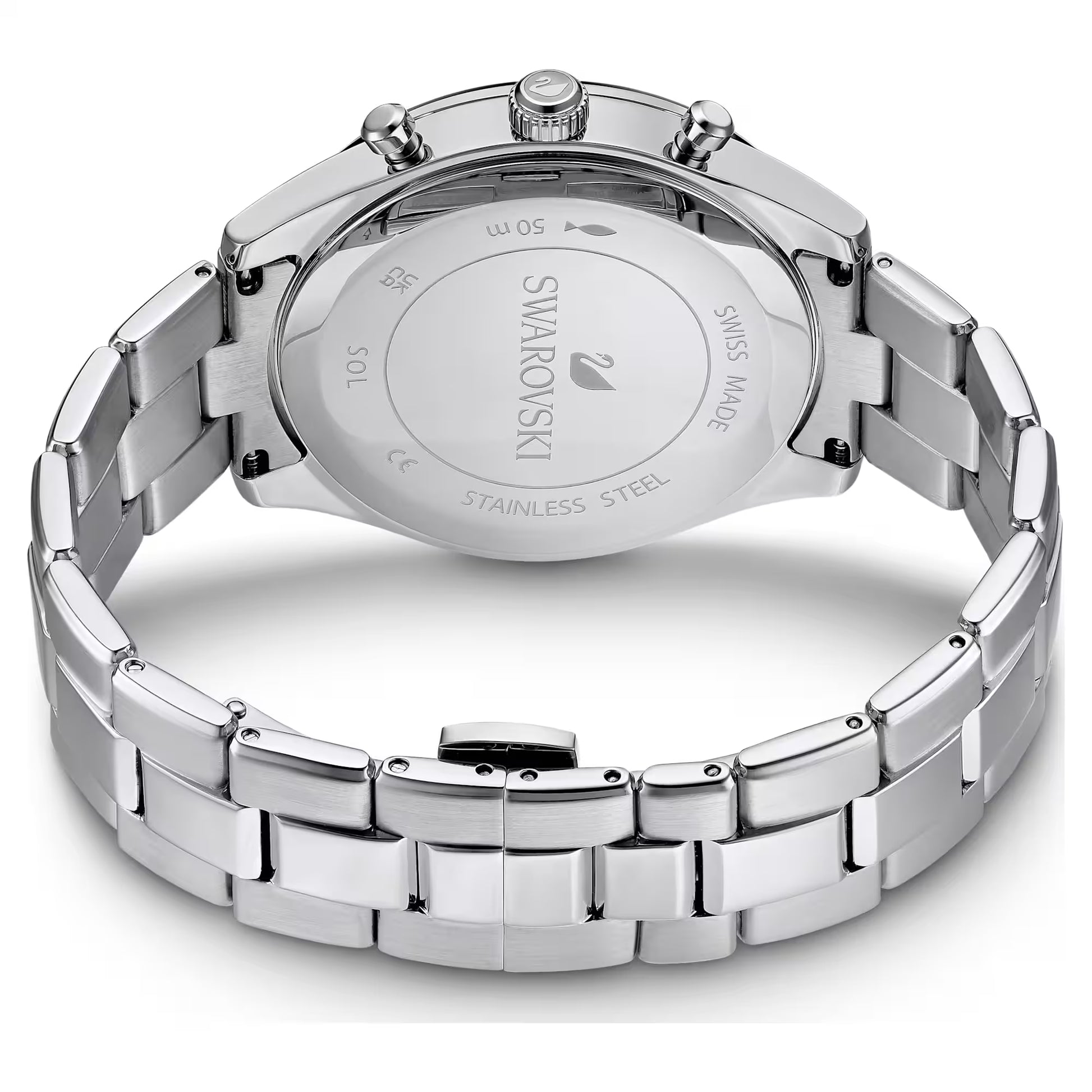 The perfect balance between tradition and innovation, the Octea 39mm is a modern and luxurious watch. Engineered in stainless steel, it features a stylish, black sunray dial with crystal index markers, three dial counters and a date window. The ultra-chic, black crystal bezel, exclusive to the line, and three-link metal bracelet complete the extraordinary design. The watch is water resistant to 50m and made in Switzerland.
