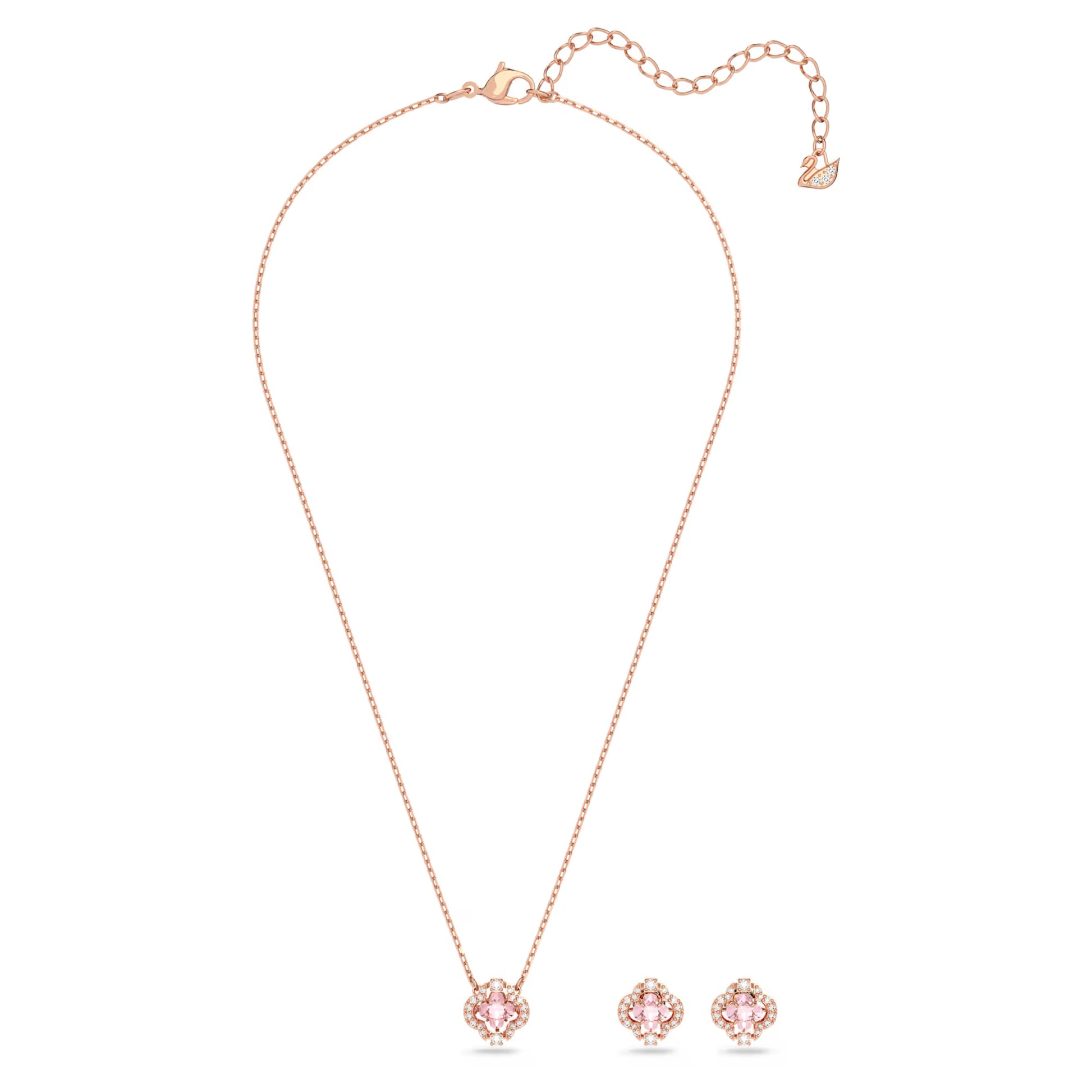 Una Set, Mixed Cuts, Clover, Pink, Rose Gold Tone Plated
