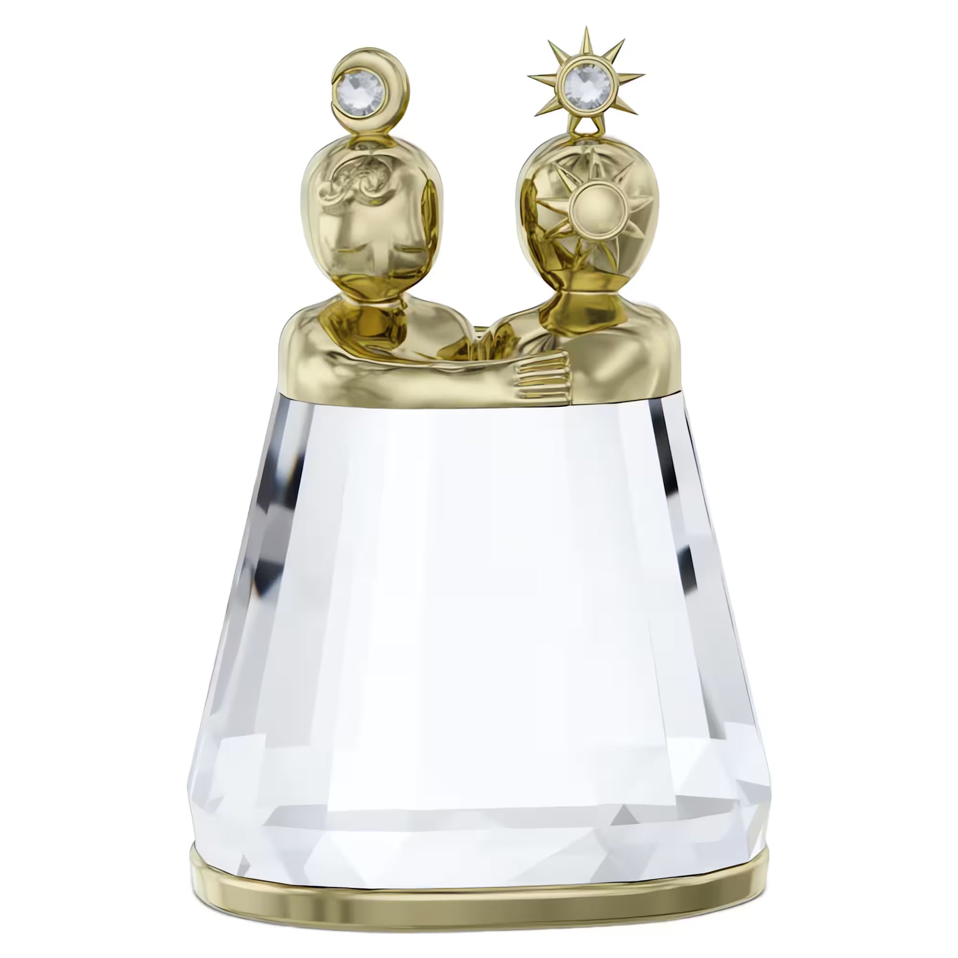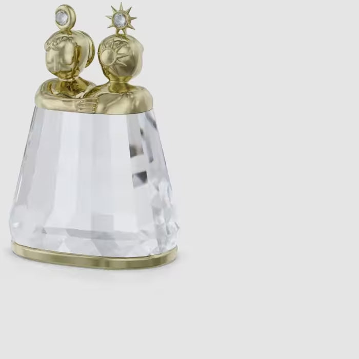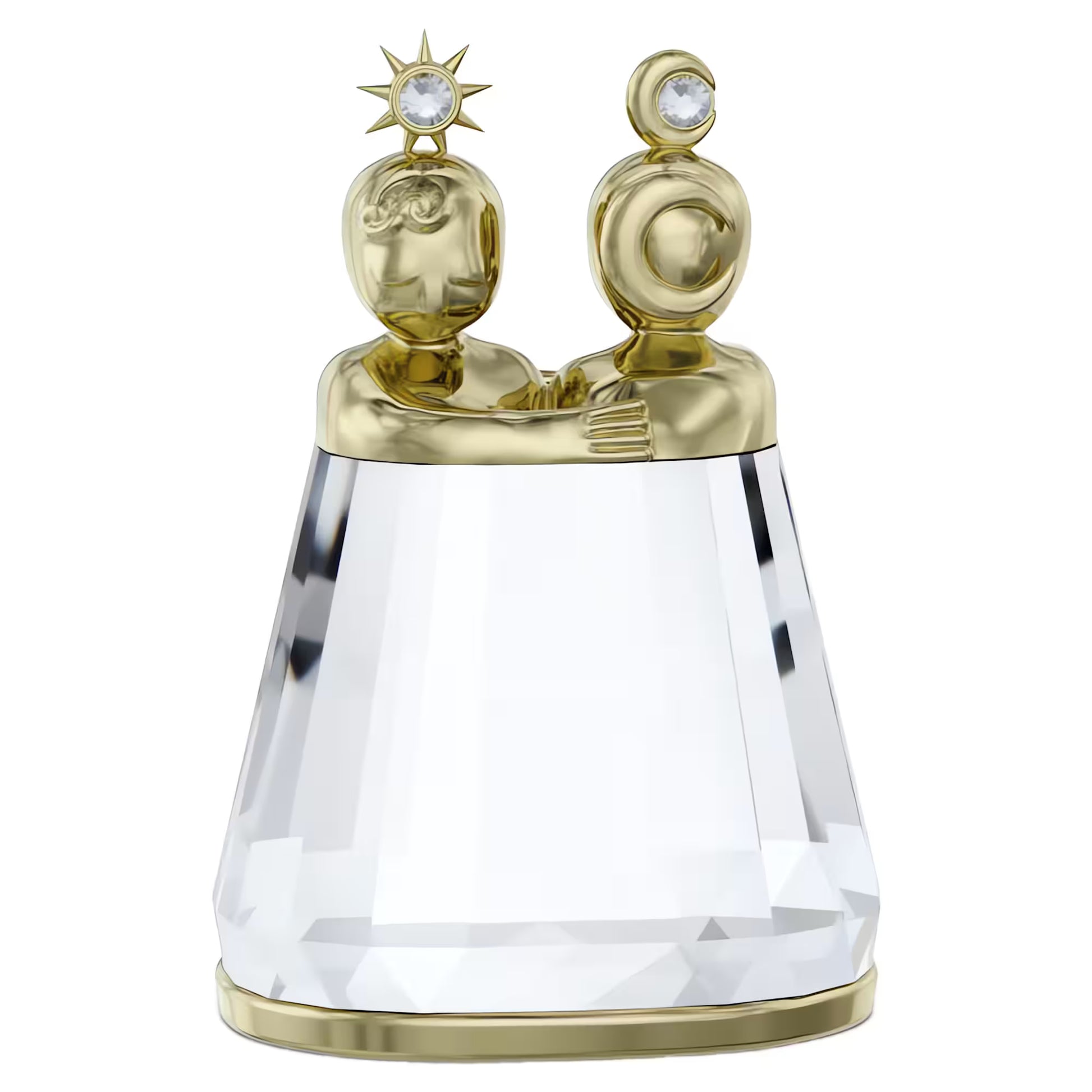 Taking notes from the cosmos, this distinctive Gemini figurine is a wondrous tribute to the zodiac. The astrological design combines precision cutting with engraved gold-tone metal, featuring 62 facets that represent two twins alongside the moon and sun. Gift this special piece to yourself or someone who is celebrating their birthday. Decoration object. Not a toy. Not suitable for children under 15.