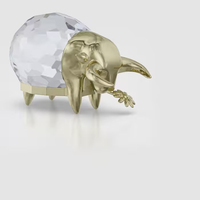 Taking notes from the cosmos, this bold Taurus figurine is a wondrous tribute to the zodiac. The astrological design combines precision cutting with engraved gold-tone metal, featuring 98 facets that represent a bull with a meadow flower. Gift this special piece to yourself or someone who is celebrating their birthday. Decoration object. Not a toy. Not suitable for children under 15.