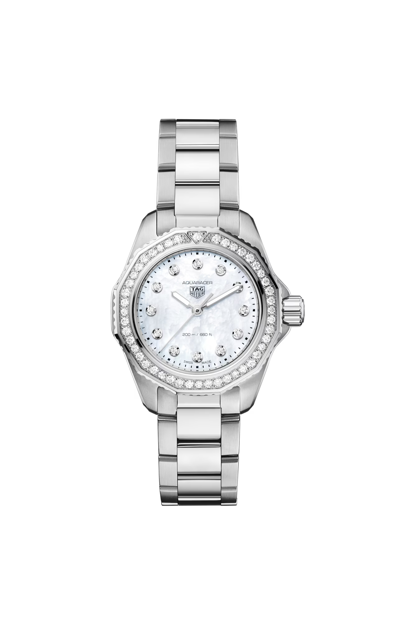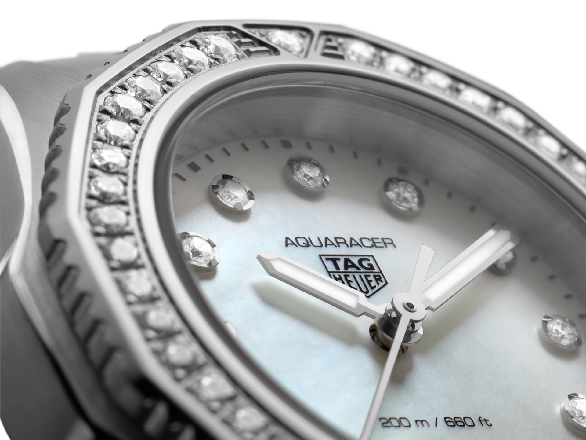 Decked out with a VS diamond-set bezel and dial, this TAG Heuer Aquaracer combines absolute elegance with extreme robustness. With a 30mm steel case and reliable quartz movement, this versatile tool watch is the perfect everyday companion.