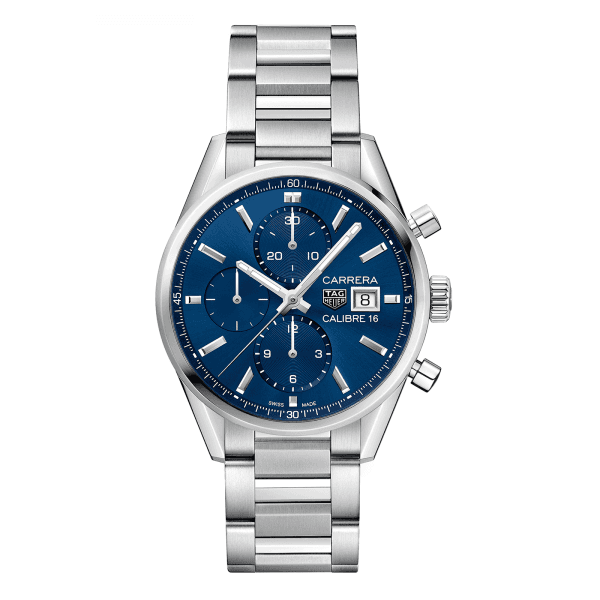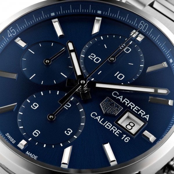 TAG Heuer Carrera Calibre 16 CBK2112.BA0715 Blue Dial & Fine-brushed and polished steel Strap Gent Watch with Chronograph 41 mm.