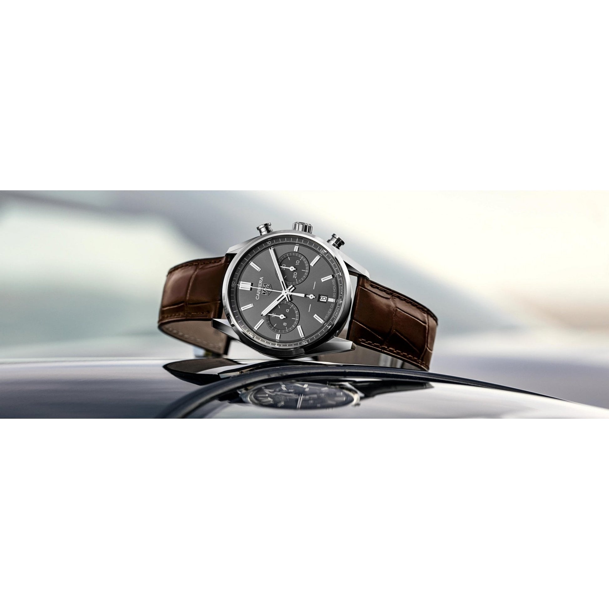 Carrera Chronograph Brown Leather Strap Mens Watch