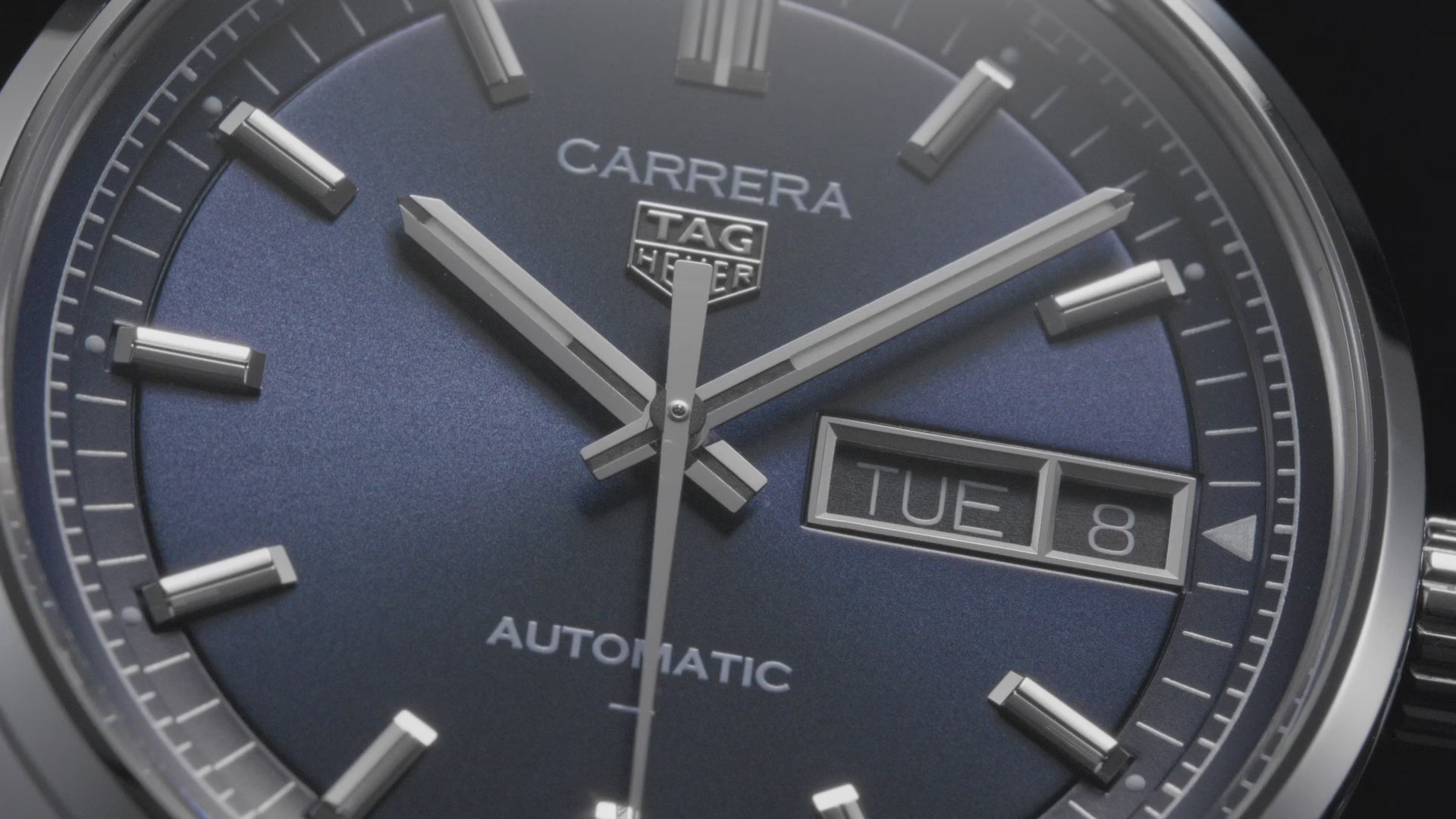 Introducing the TAG Heuer Carrera Day-Date in our signature blue, featuring the TH31-02 movement for an impeccable blend of performance and style. The sunray-brushed finish adds depth to this iconic design.