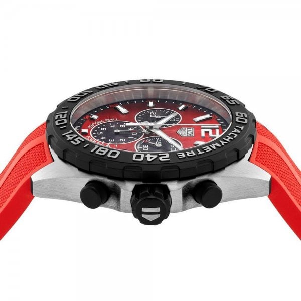 Set the pace for victory in this bold and colourful TAG Heuer Formula 1. Building of the collections legacy but racing to the future, this red motor racing leader is as stimulating as ever with its red livery. A watch for true pilots.