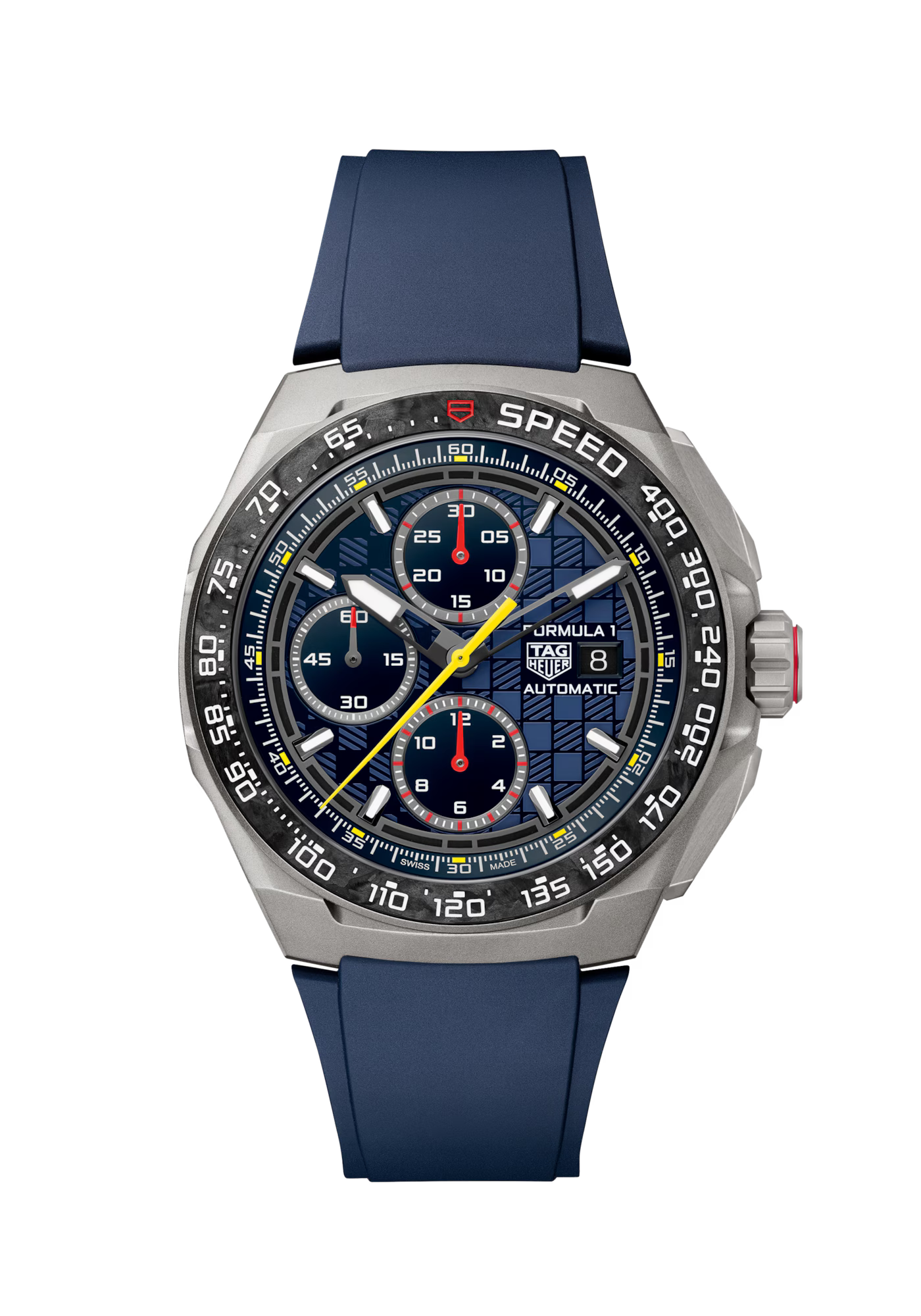 TAG Heuer brings its racing DNA to the fore with the TAG Heuer Formula 1 Automatic Chronograph x Oracle Red Bull Racing. This striking timepiece pays homage to the Oracle Red Bull Racing team, combining its iconic racing colours with cutting-edge materials for the ultimate motorsport-inspired watch.