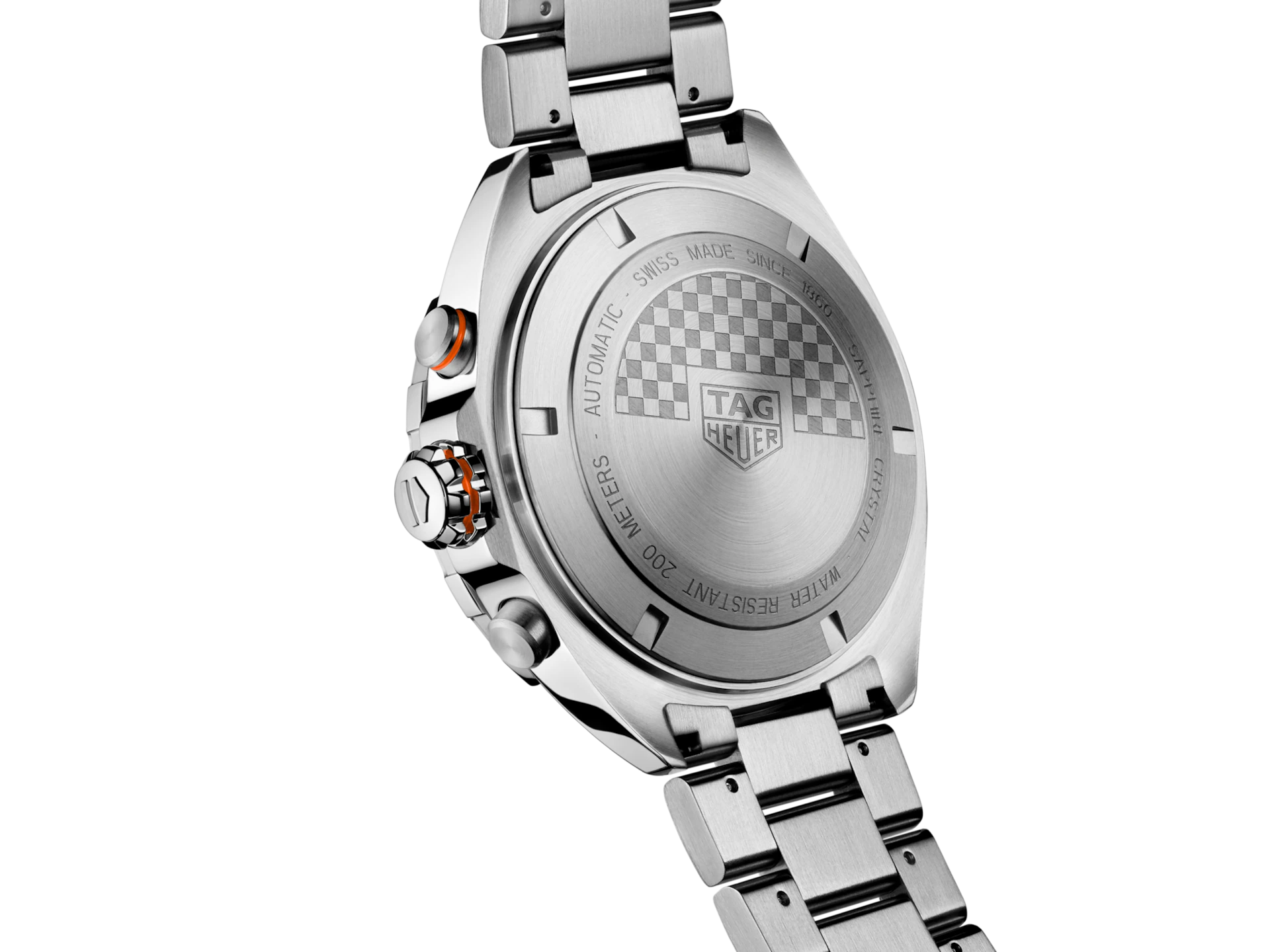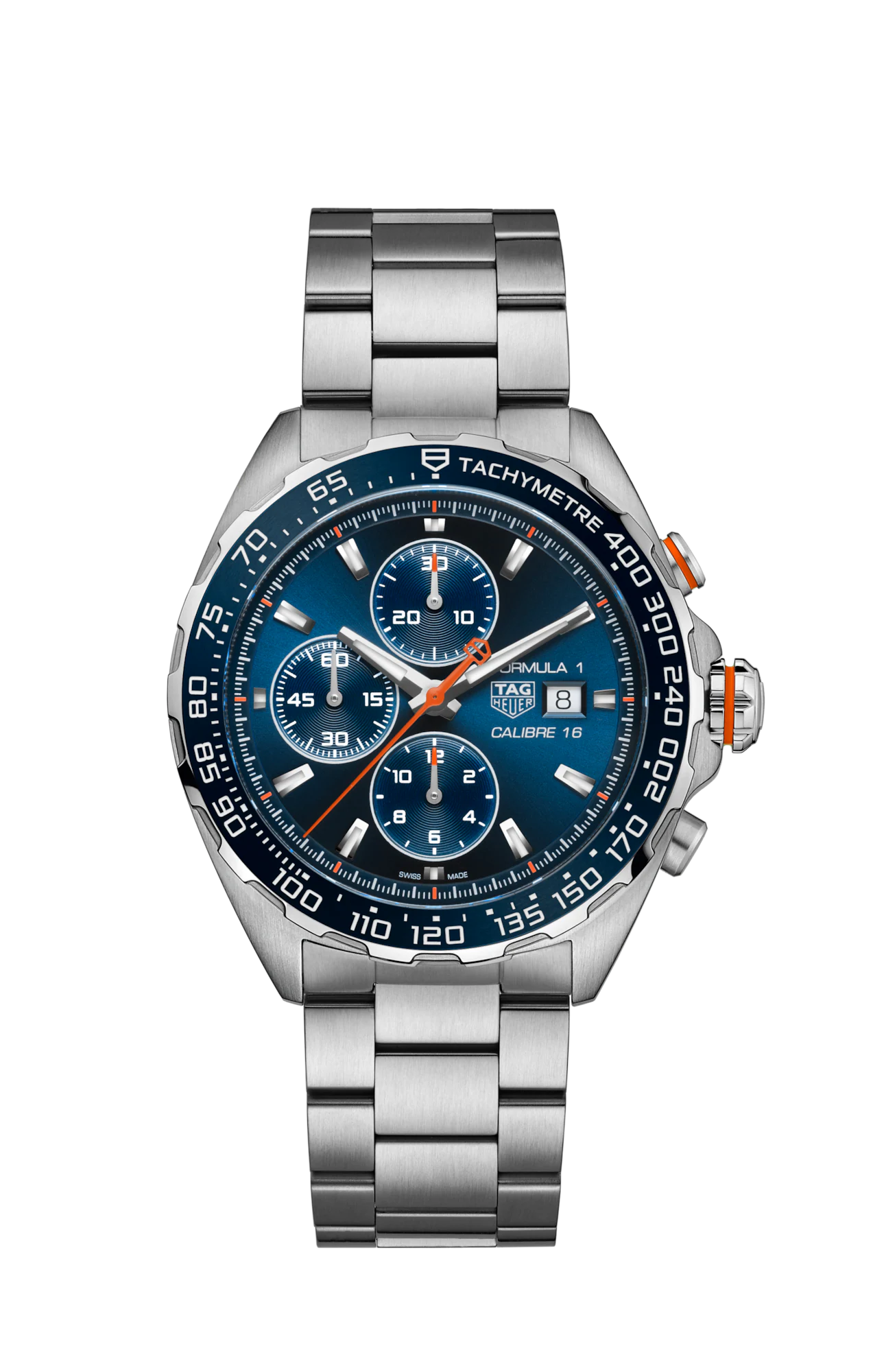 For gentleman drivers craving elegance with a sporty edge, this TAG Heuer Formula 1 chronograph is your go-to timepiece. Distilling an energetic look with its vivid orange highlights, this 44 mm watch is the perfect match for speed lovers.