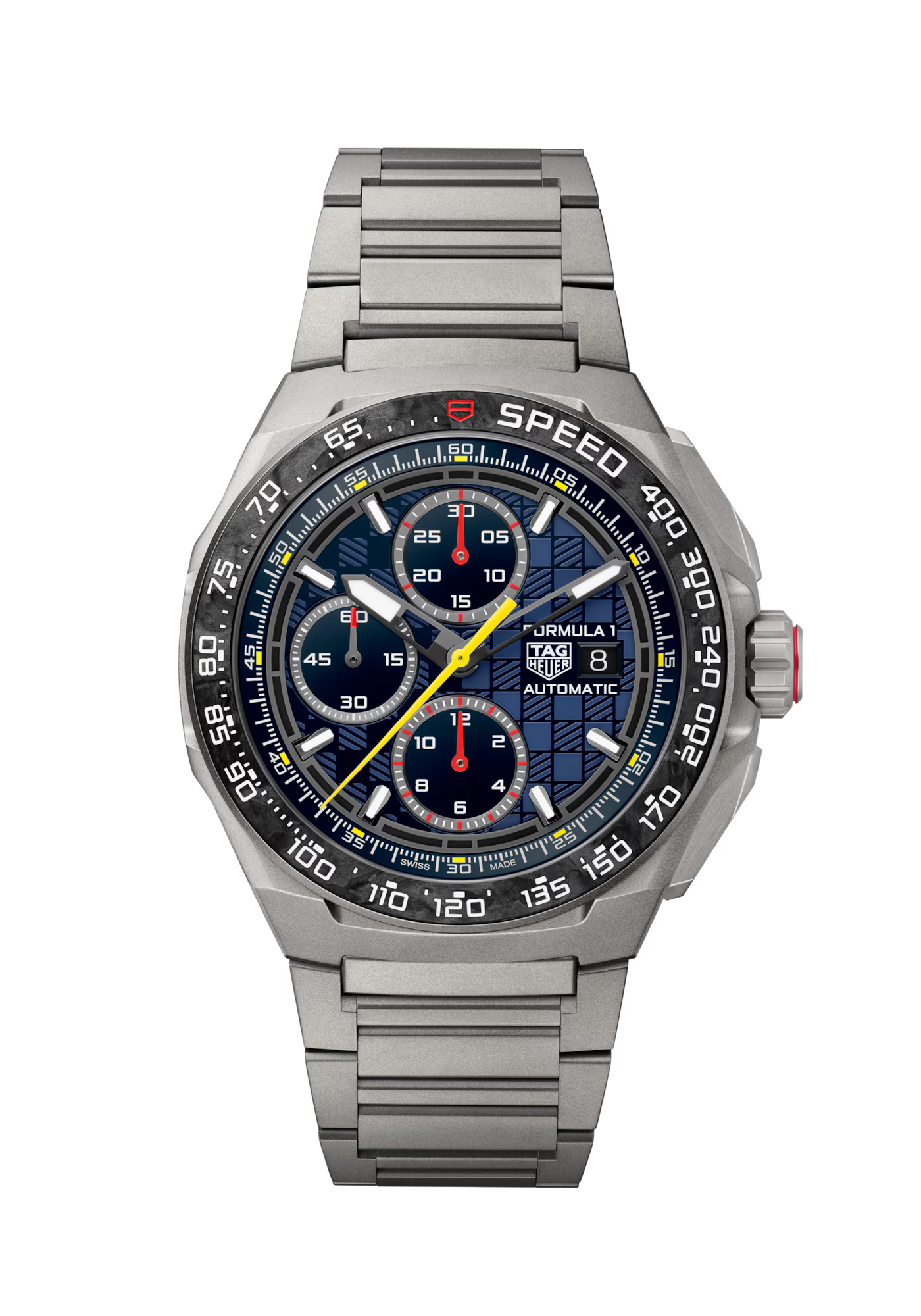 Crafted in ultra-lightweight titanium, this TAG Heuer Formula 1 Chronograph celebrates the adrenaline-fueled partnership between TAG Heuer and Oracle Red Bull Racing. Combining precision, bold design, and endurance-ready performance, this co-branded 44mm timepiece is built for those who thrive on speed.