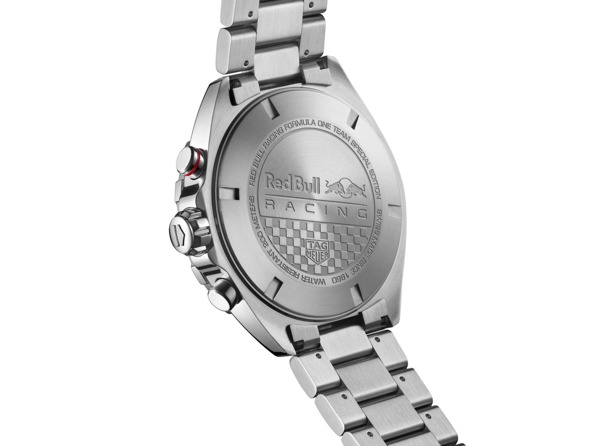 Part of a unique collaboration, the TAG Heuer Formula 1 Red Bull Racing Special Edition is ready to roar ahead and set the pace. This dynamic chronograph is a fitting tribute to two high-energy leaders in their fields and a real challenger.