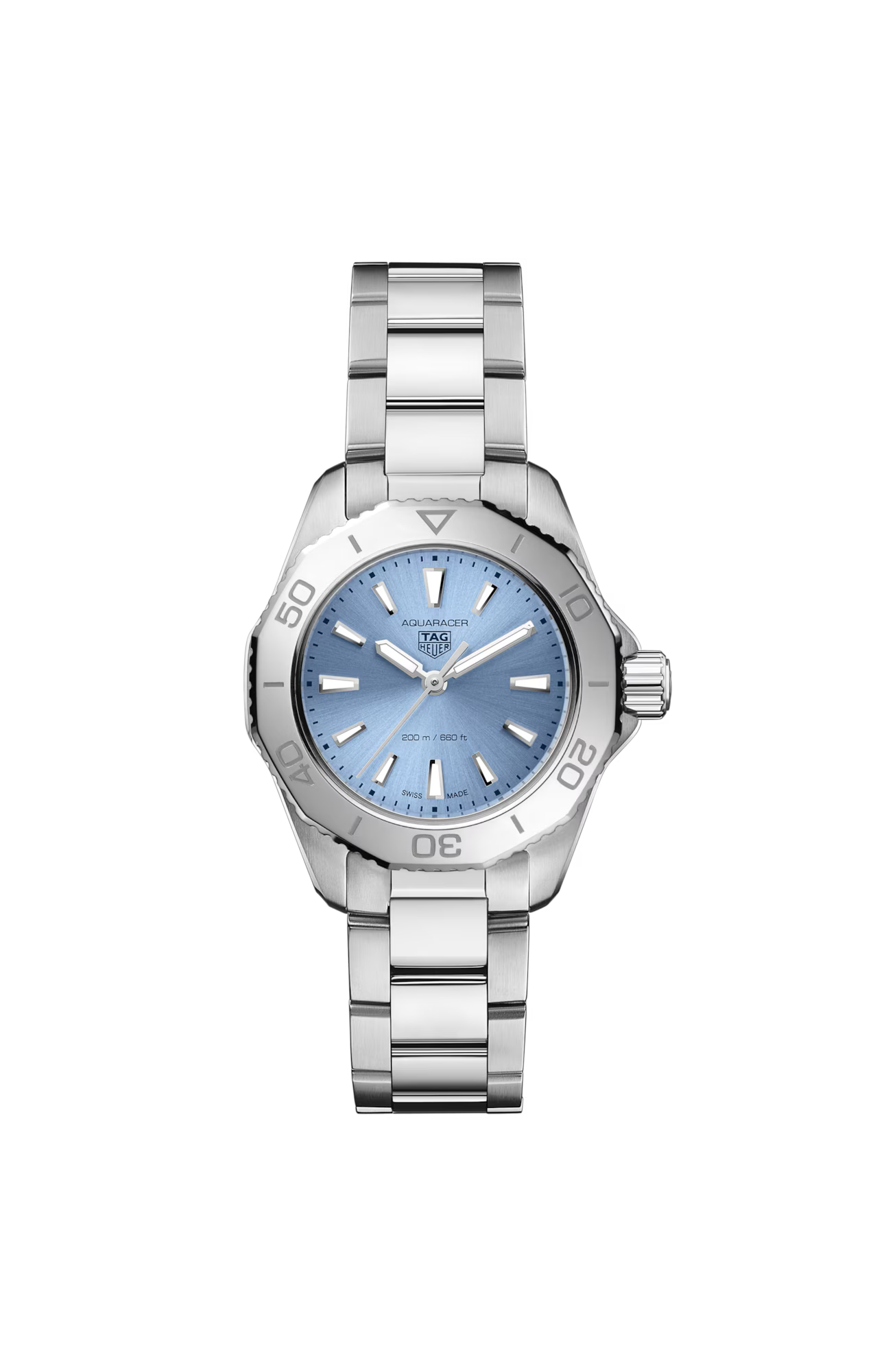 The TAG Heuer Aquaracer is a true tool watch, crafted for the daring spirits. This light blue-dialed 30mm model is made for those who want a daily companion that is as elegant as it is robust. Overcome your personal limits in style.