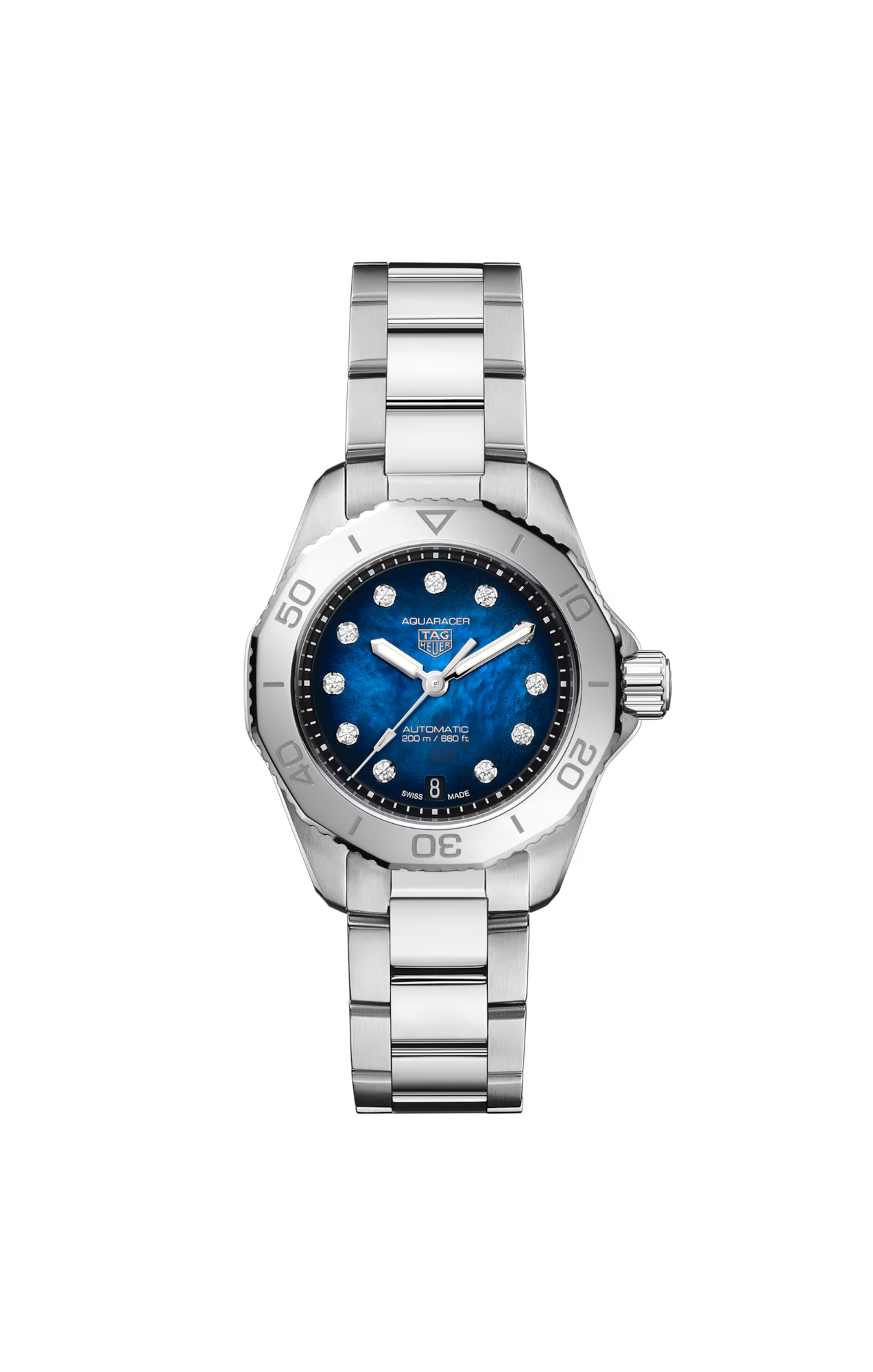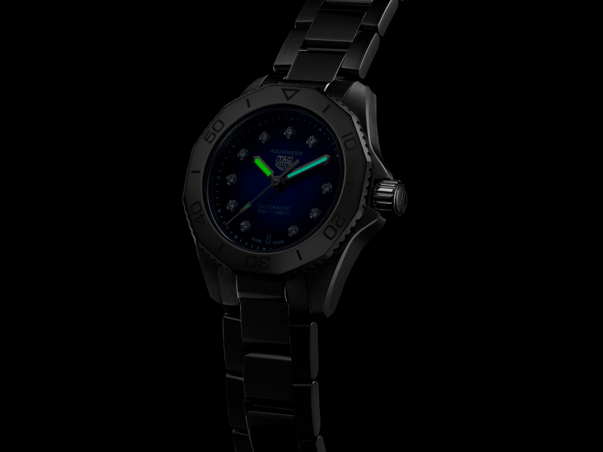 This versatile TAG Heuer Aquaracer is an incentive for going beyond the limits, with tremendously robust construction and unparalleled boldness of design. With 11 VS diamonds (0.107 ct), this is a watch made to take up a challenge.