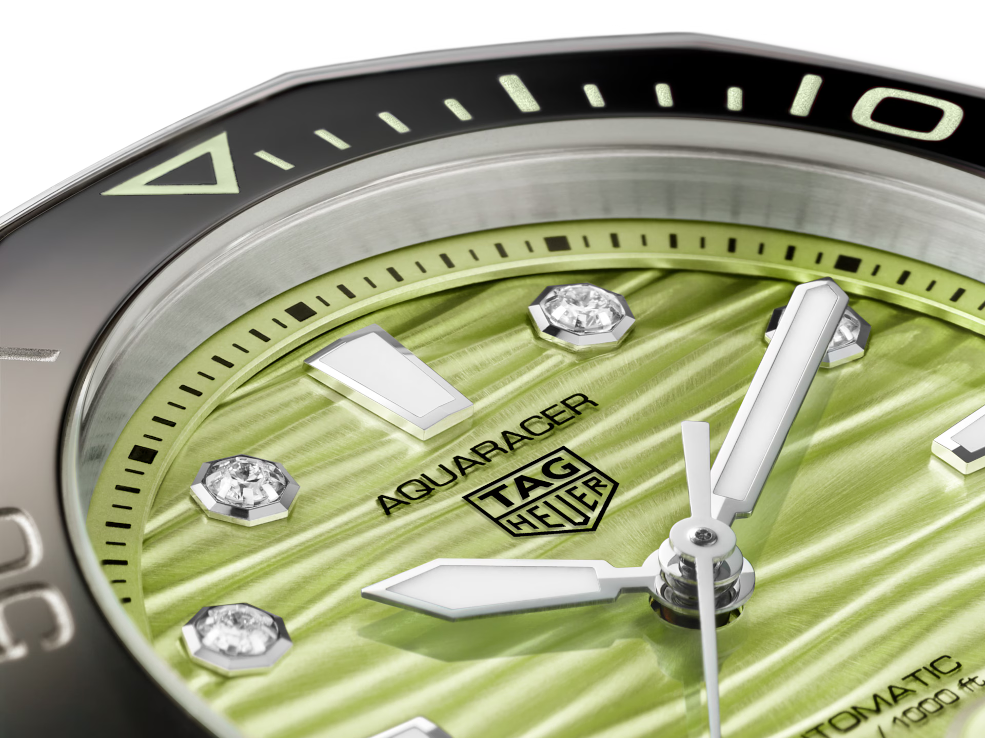 With a luminous pastel green dial and rugged build, the TAG Heuer Aquaracer Professional 300 Date is ready for deep dives and sunlit shores alike. Engineered to withstand the sea’s most powerful forces, it pairs elegance with serious diving credentials.