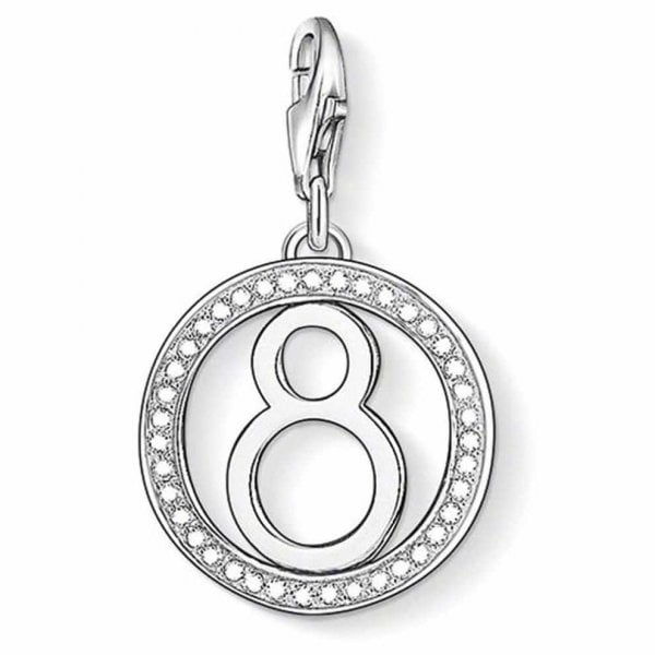 Lucky Number 8 Charm Sterling Silver, White Zirc
