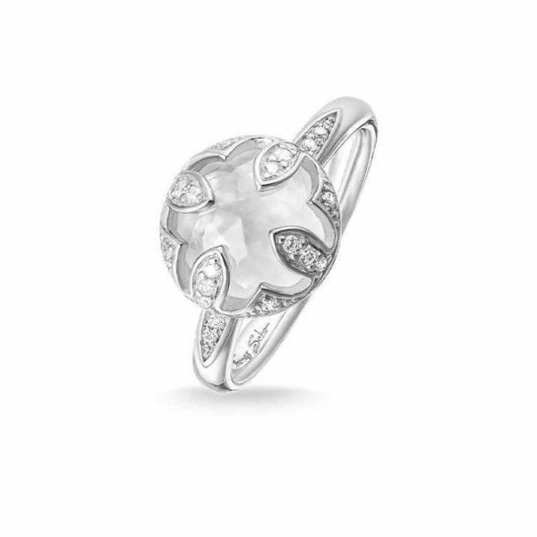Silver Lotus Ring, White