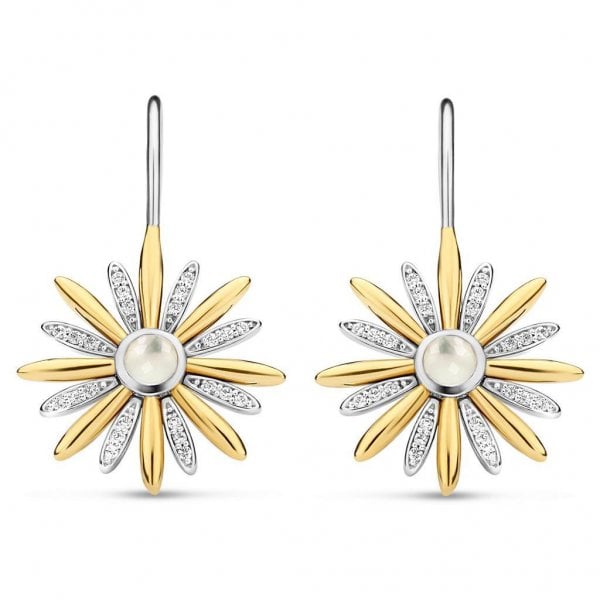 These TI SENTO - Milano gold-plated silver earrings 7861ZY flaunt an elegant star shape featuring gold-plated and pavé rays with a creamy mother of pearl doublet centre stone. These gold-plated earrings are crafted from 925 sterling silver. They will hang delicately from your ears bringing a touch of light and energy to your look.