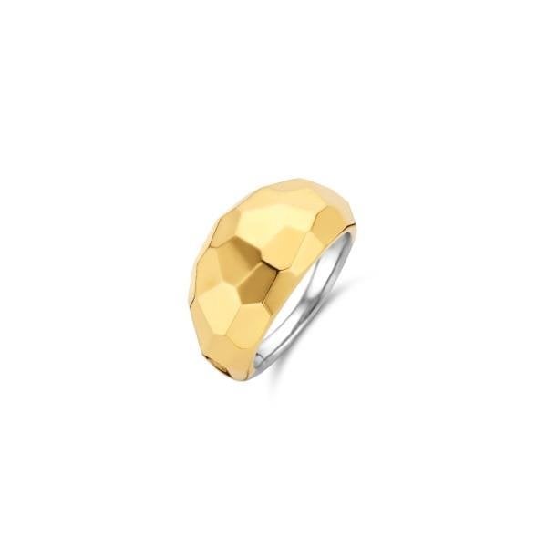 This TI SENTO - Milano silver domed bombay ring 12200SY is a vintage and minimalistic piece. Made of sterling silver and plated with gold. Its geometric facets make it a luxurious yet funky statement ring.