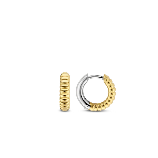 These TI SENTO gold-plated silver hoop earrings 7839SY have a unique rib structure design. Decorate your ears with their bold design and golden glow. These pieces, made of 925 sterling silver, are the perfect hoops to hang your ear charms on; create your own unique little artworks.