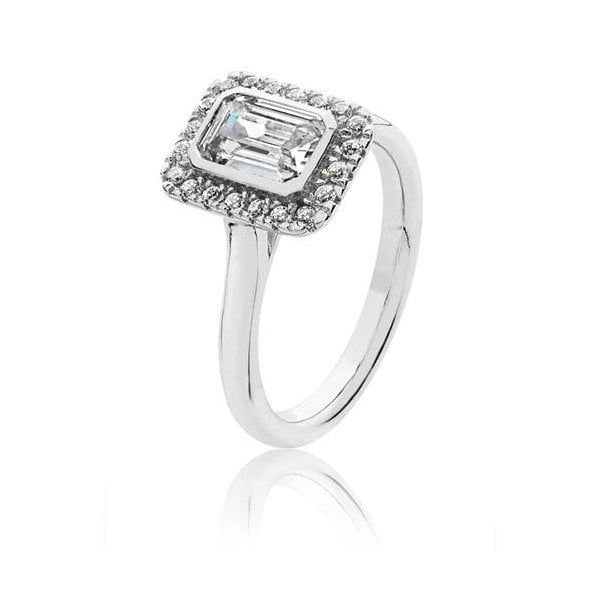 SILVER LGR BEZEL SET EM CUT HALO STYLE CZ RING