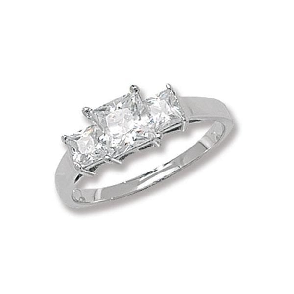 SILVER LADIES' PRINCESS CUT CZ RING - SIZE K
