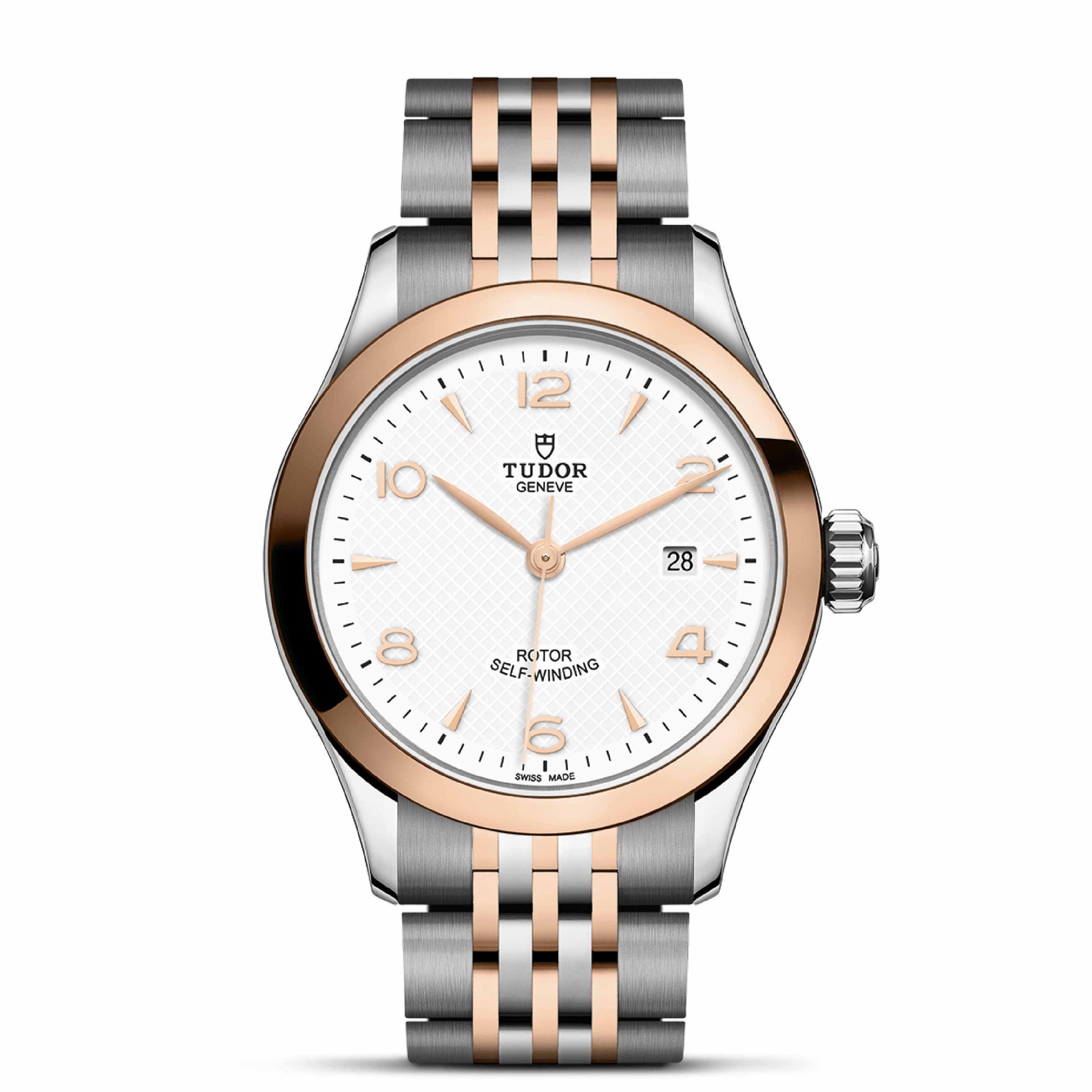 First center links in steel or solid rose-gold. Remaining center links in steel or steel covered by a 0.2mm rose gold cap