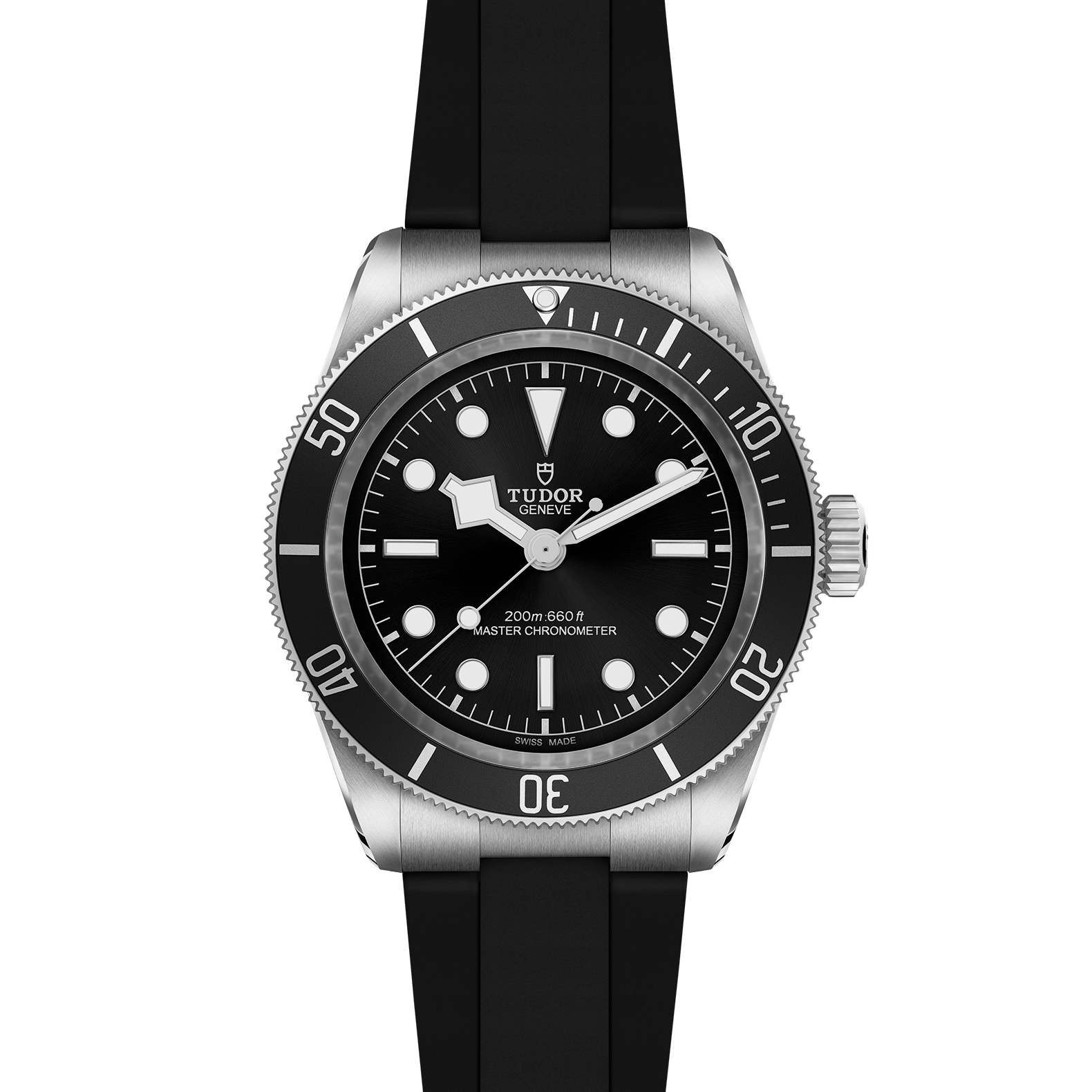 Screw-down steel winding crown, with the TUDOR rose engraved and black-lacquered, with blue anodised aluminium winding crown tube