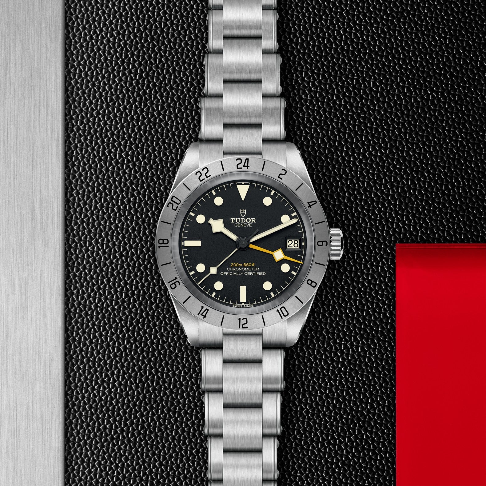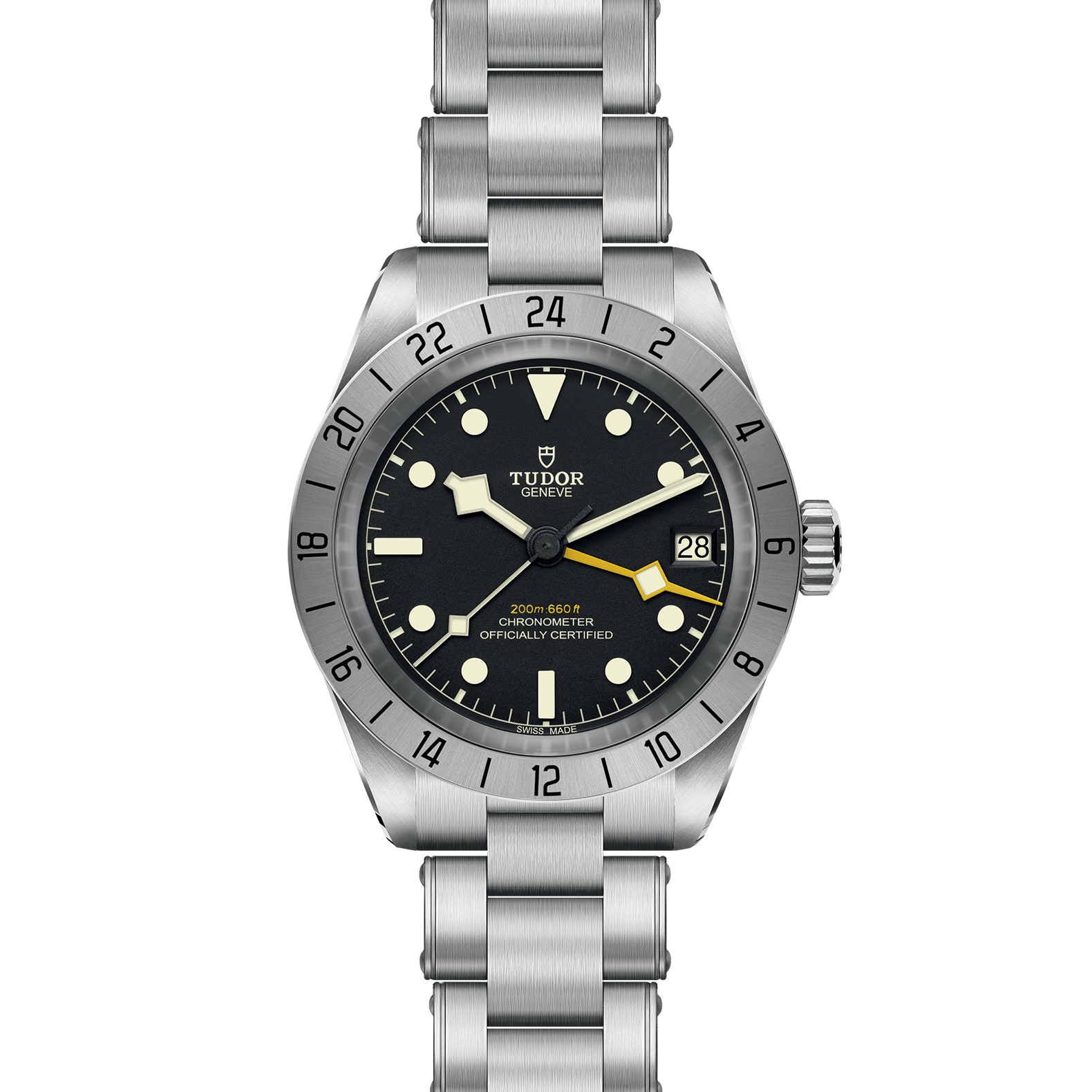 24-hour graduated fixed bezel in satin-brushed steel