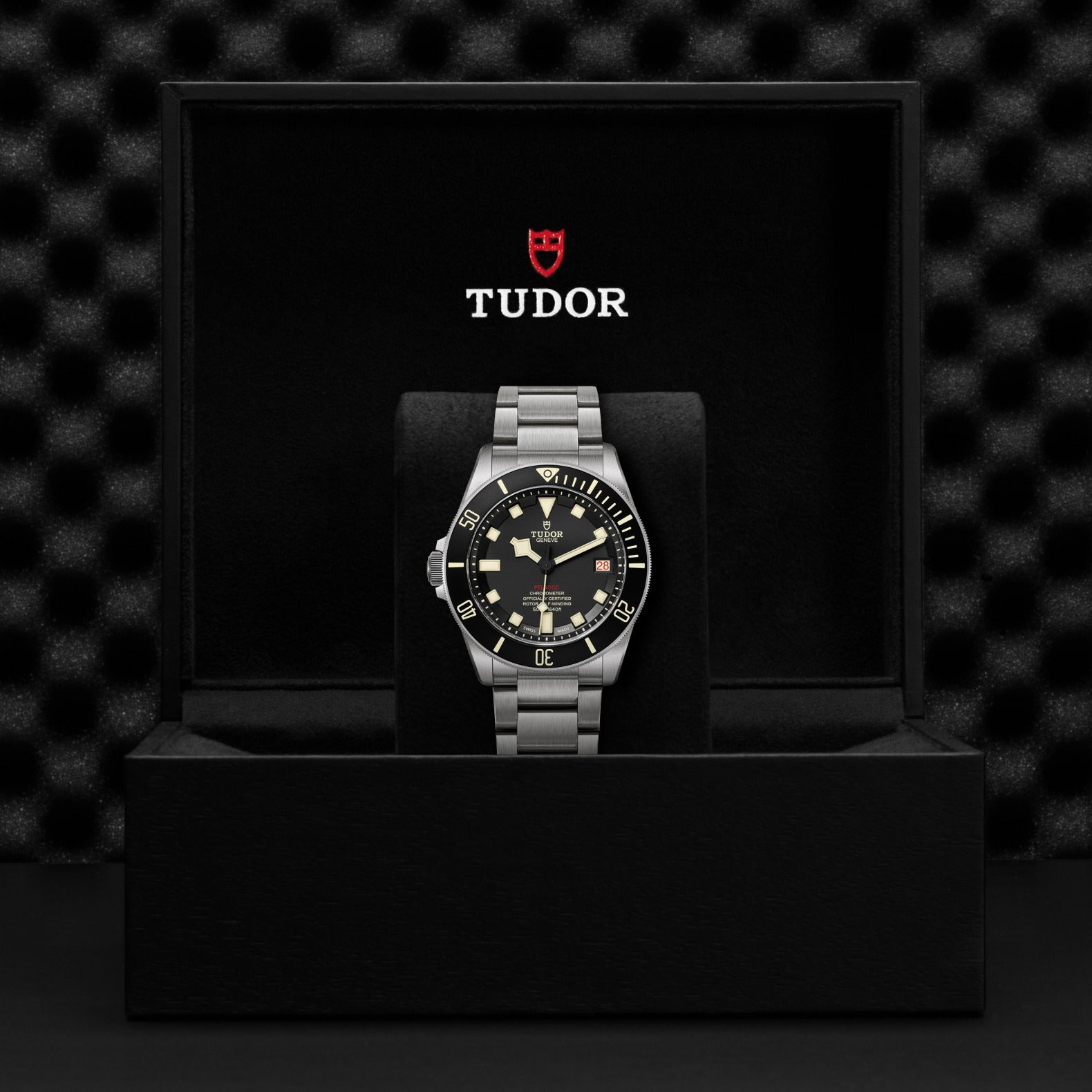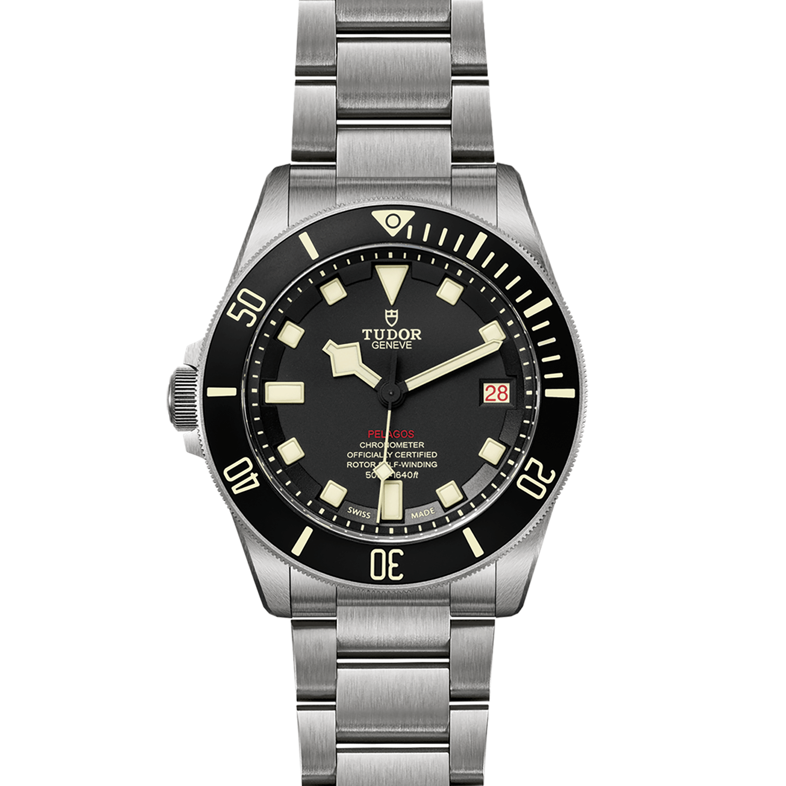 Titanium screw-down winding crown at 9 o’clock with the TUDOR logo in relief