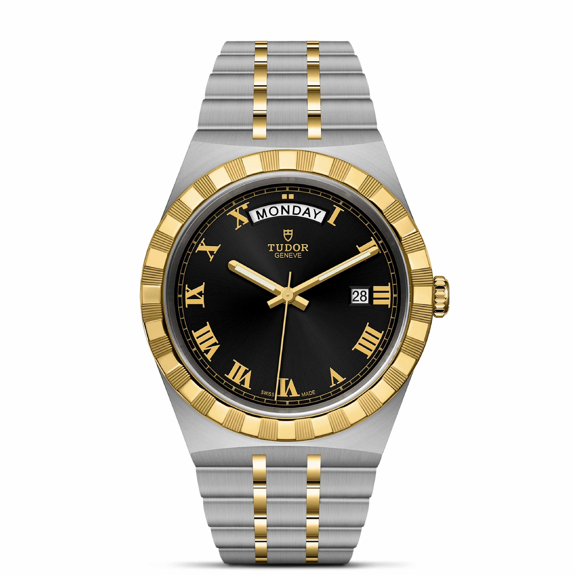 Notched bezel in yellow gold, alternating cut grooves and polished finish
