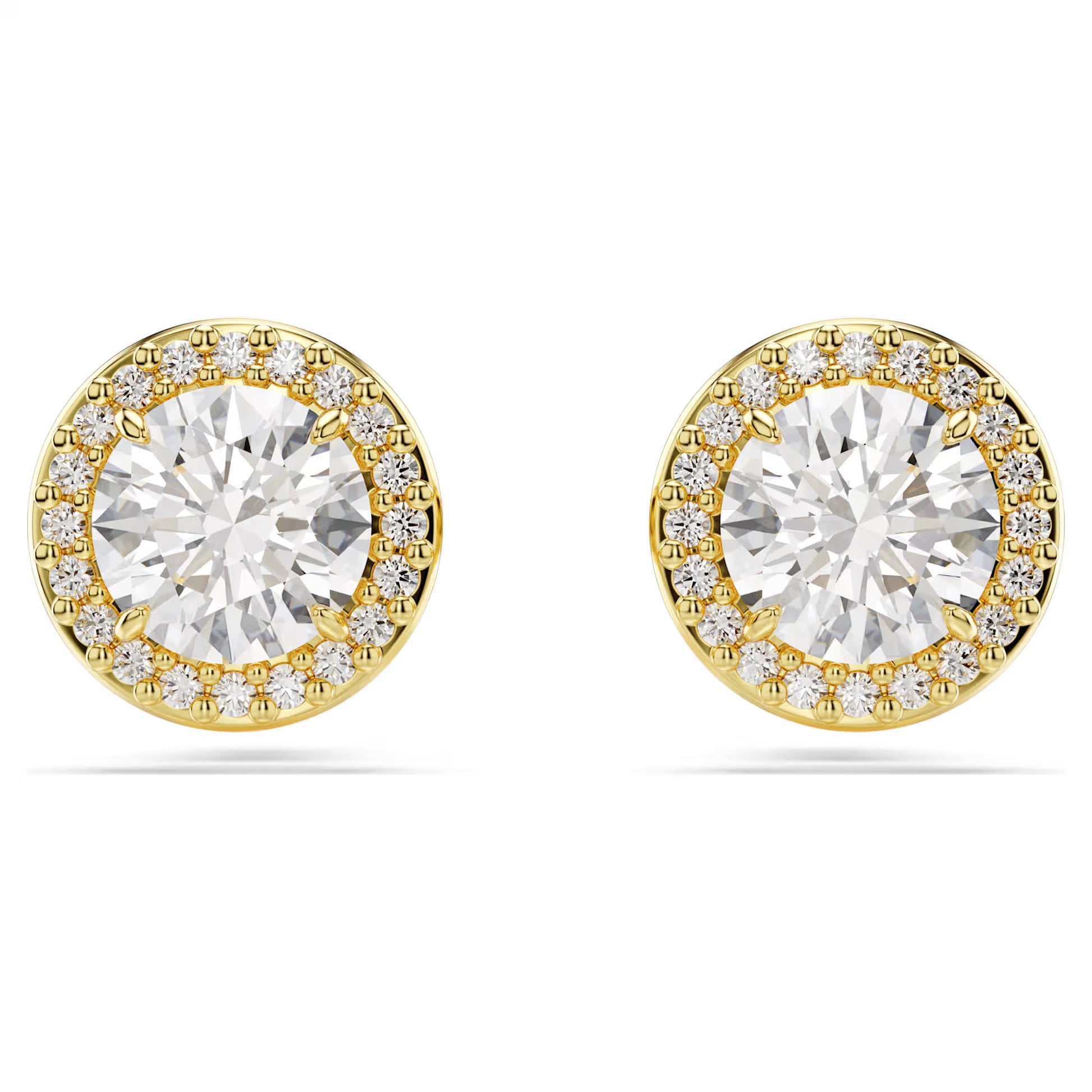 Una Angelic Stud Earrings, Round Cut, Gold Tone, Gold Tone Plated