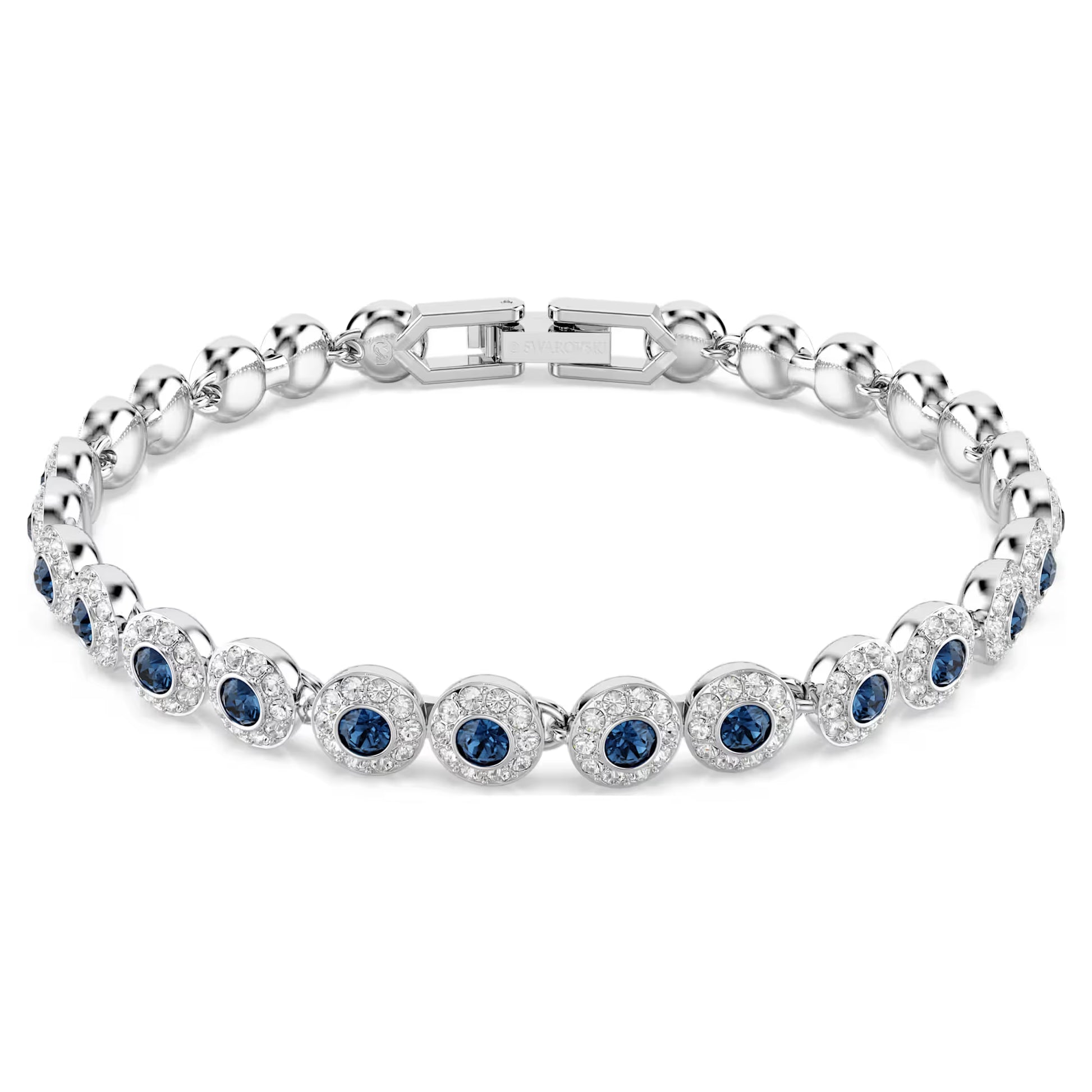 Una Angelic Tennis Bracelet, Round Cut, Blue, Rhodium Plated